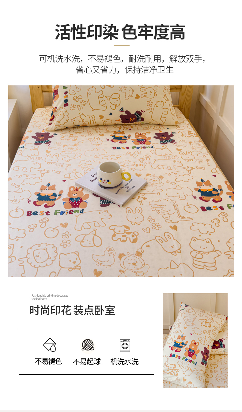 • 91家纺网 家纺一手货源 找家纺 金丝鸟家纺 2024新款全棉小清新印花单床笠系列(学生床) 小童趣