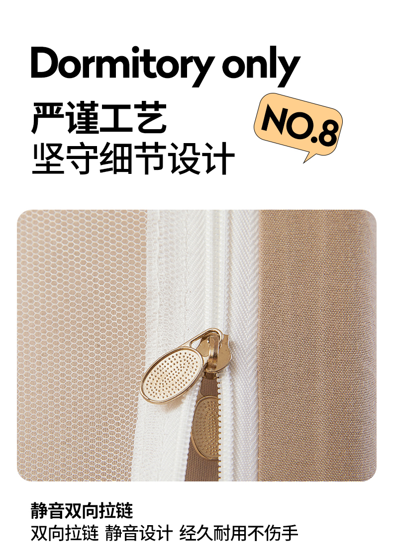 当前位置: 91家纺网 > 商品网购 > 床上用品 > 蚊帐 > 学生蚊帐 > 夏彩 2024学生新款纯色强遮光三开门防蚊防尘强遮光拉链蚊帐-88603 88603-卡其