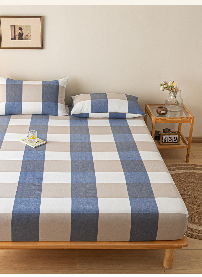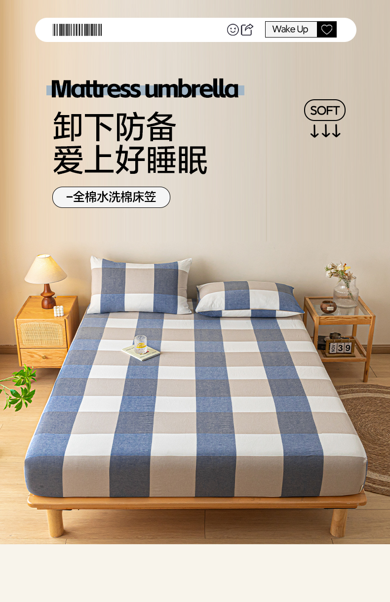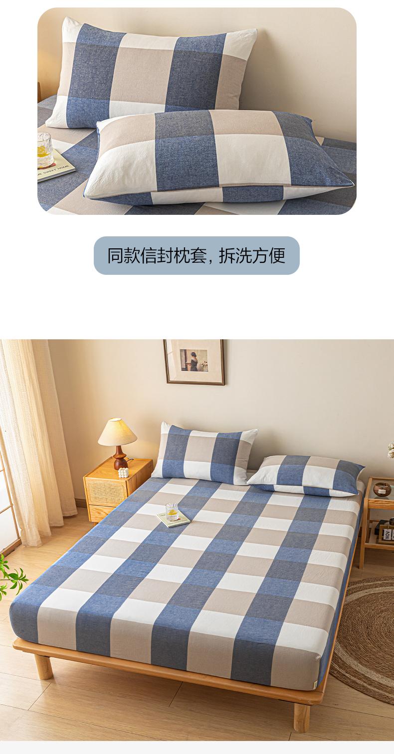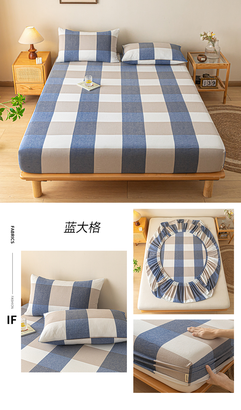• 91家纺网 家纺一手货源 找家纺 卡伦家纺 2025全棉色织水洗棉单层床笠席梦思保护套 蓝大格