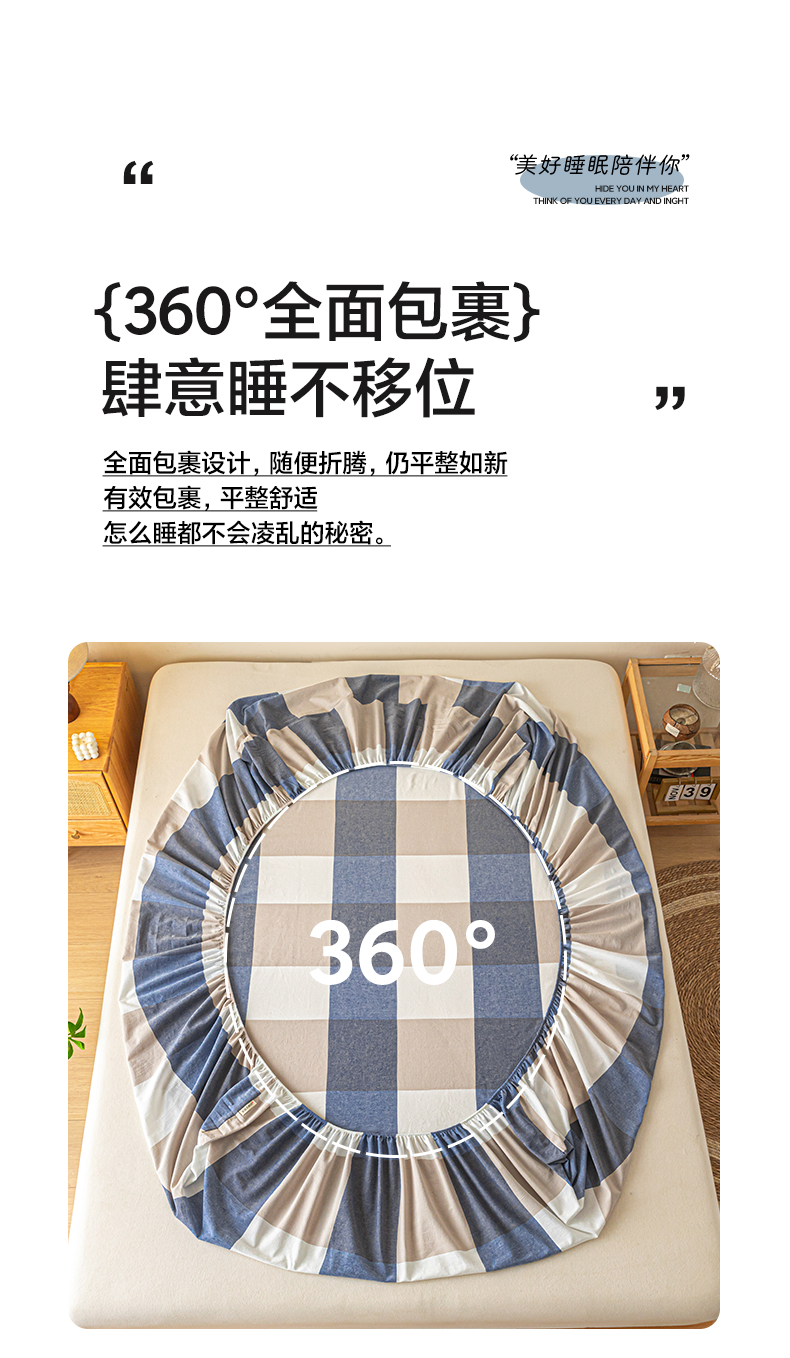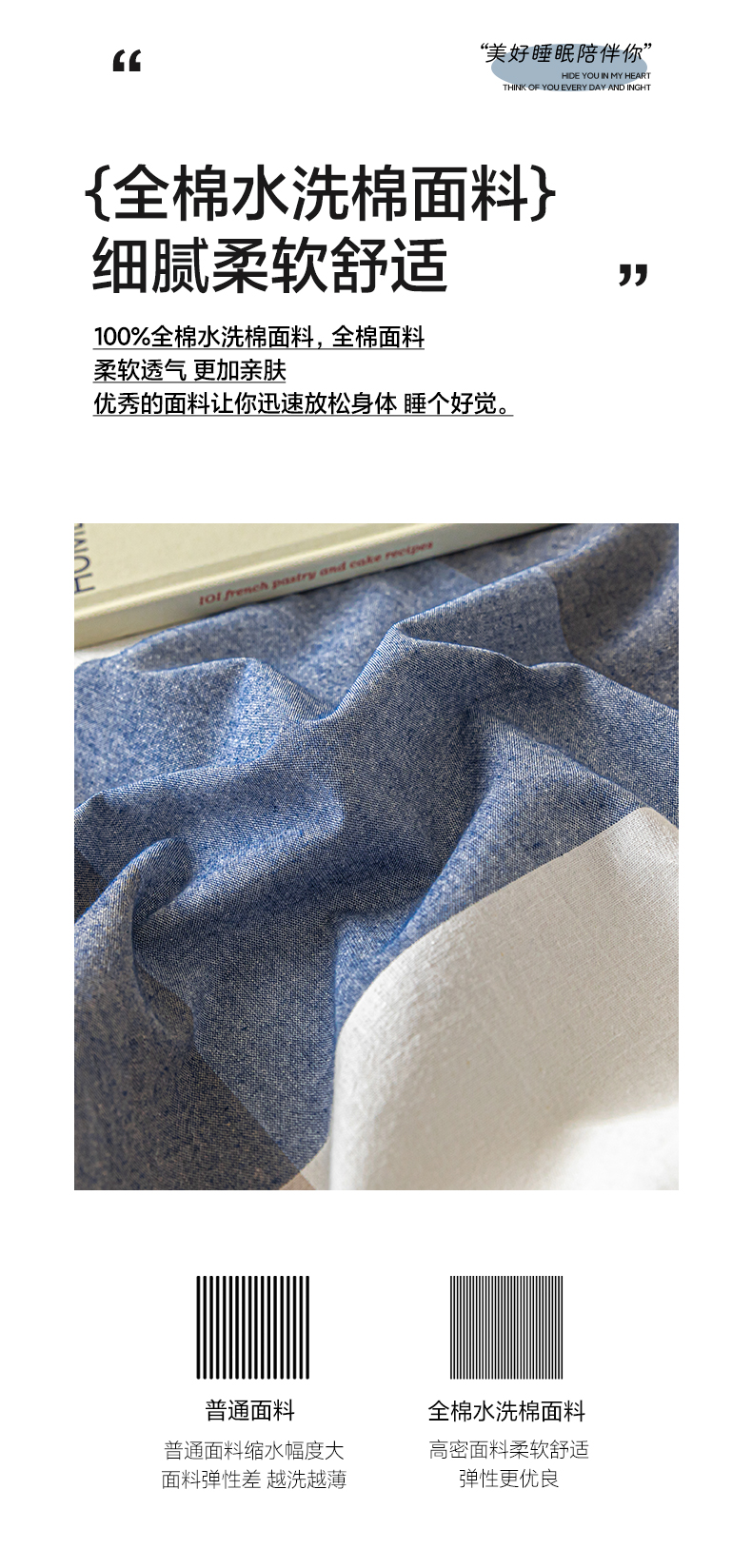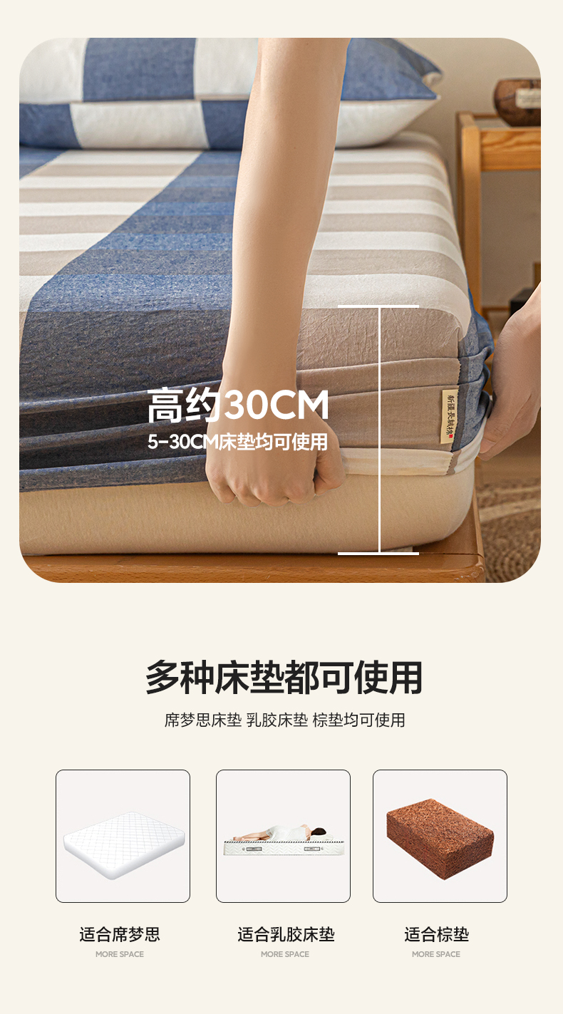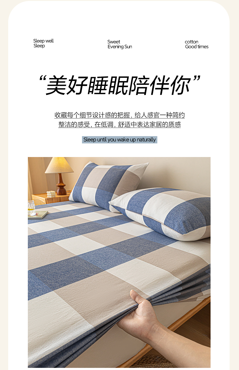• 91家纺网 家纺一手货源 找家纺 卡伦家纺 2025全棉色织水洗棉单层床笠席梦思保护套 蓝大格
