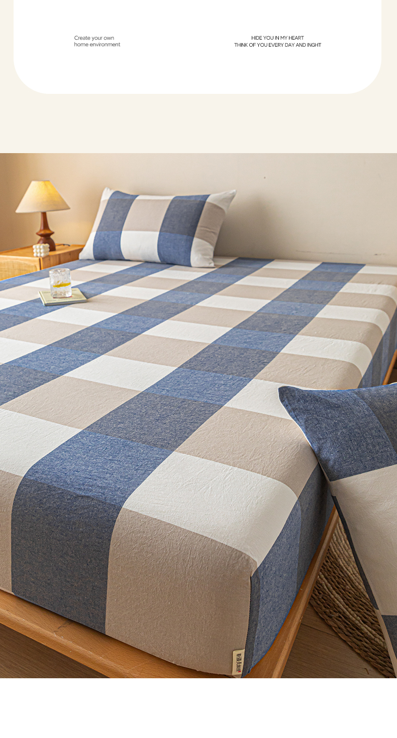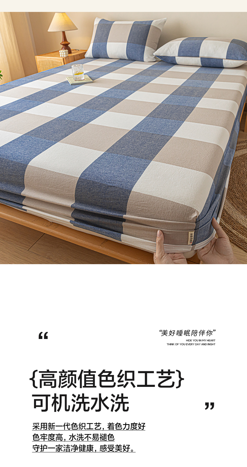 卡伦家纺 2025全棉色织水洗棉单层床笠席梦思保护套 蓝大格