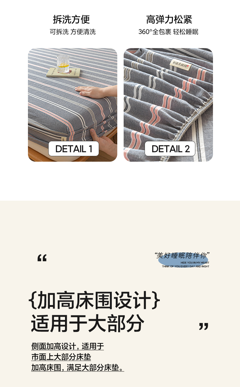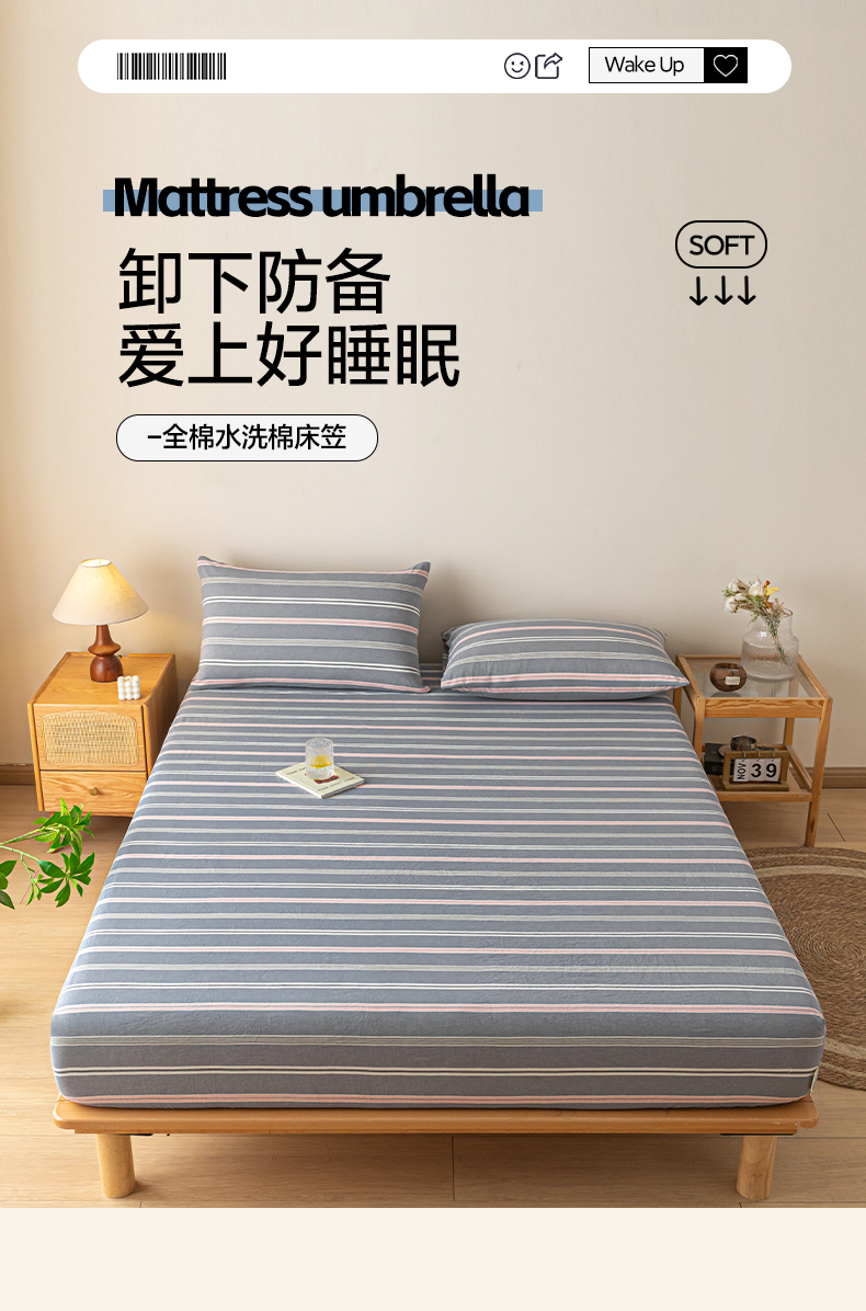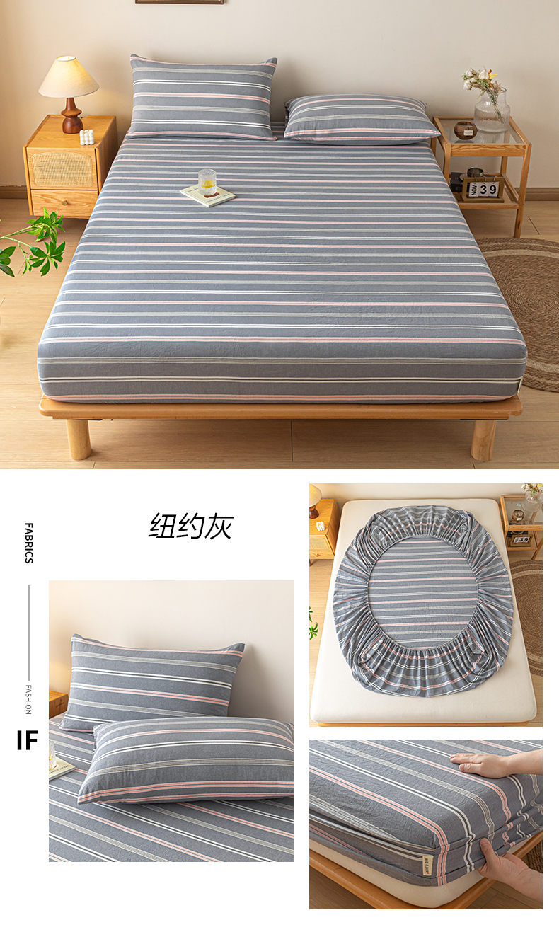 • 91家纺网 家纺一手货源 找家纺 卡伦家纺 2025全棉色织水洗棉单层床笠席梦思保护套 纽约灰