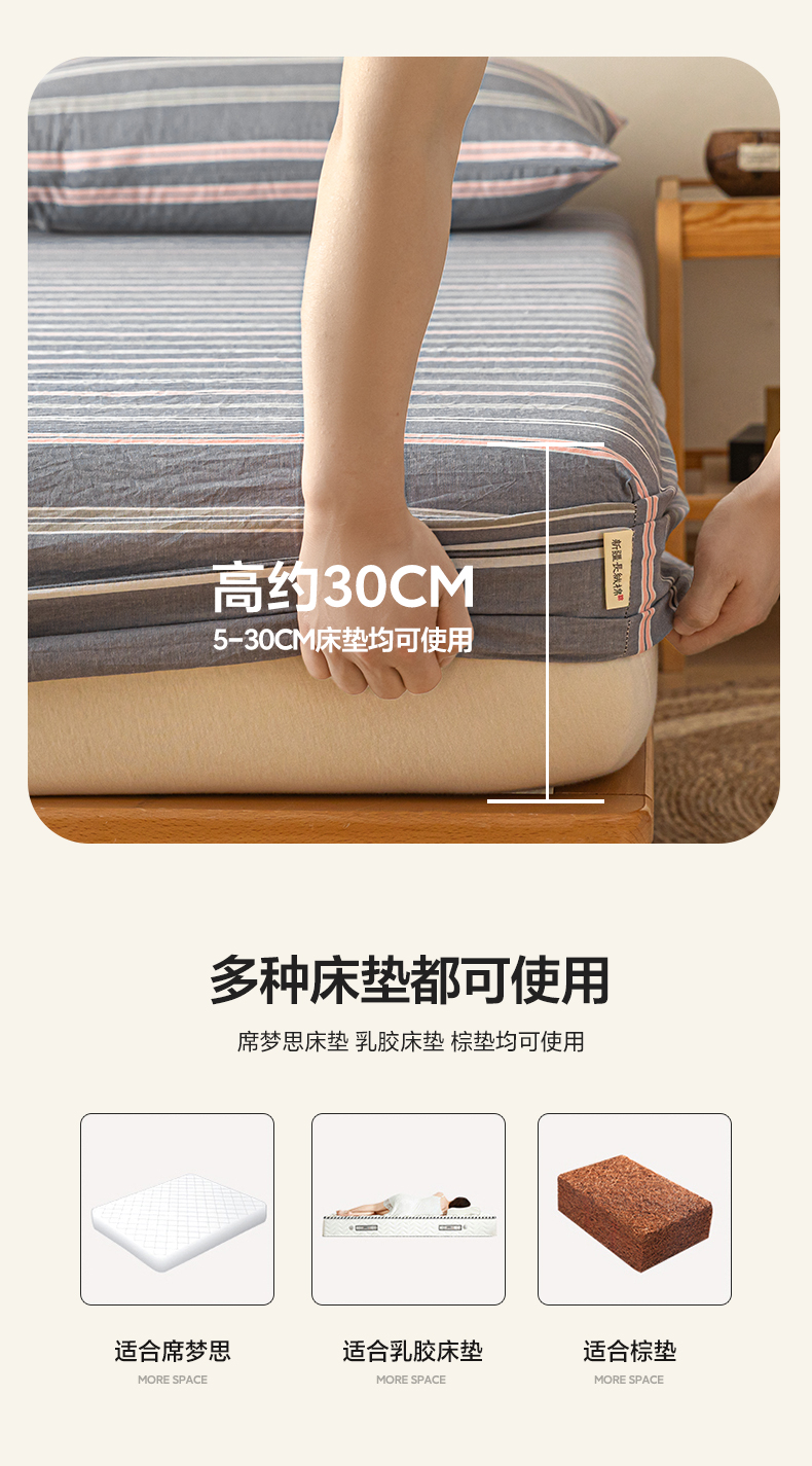 卡伦家纺 2025全棉色织水洗棉单层床笠席梦思保护套 纽约灰