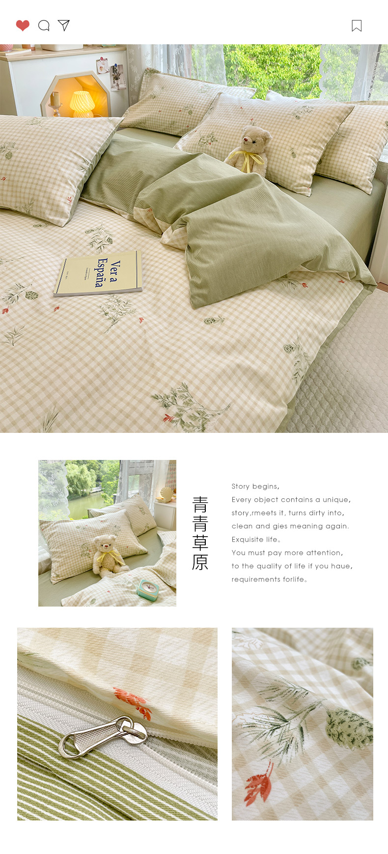 (总)瑞莱 2025夏季新款全棉纯棉有氧双层纱四件套,格子狗(粉),春日女孩,格子狗(蓝),功夫熊猫,何枝小兔,花园小狗,萝莉兔,萌萌狮,梦幻花园兔,少女象(绿),熊孩子,原宿小兔