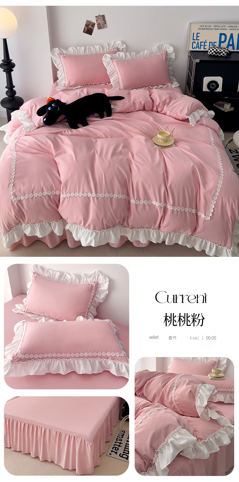 当前位置: 91家纺网 > 商品网购 > 床品套件 > 四件套 > 水洗棉四件套 > 春光里 2024新款水洗棉花边款四件套-克洛伊 桃桃粉