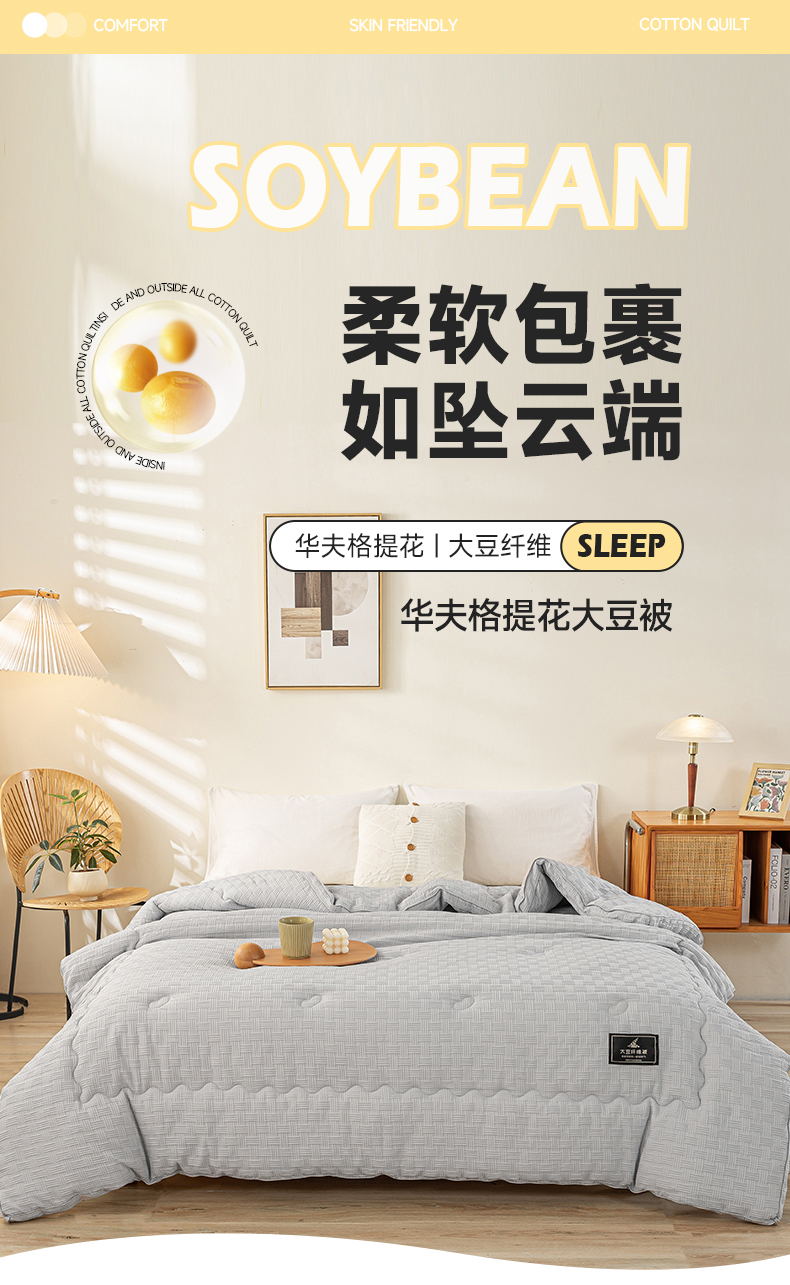• 91家纺网 家纺一手货源 找家纺 (总)玉相逢 2025新款针织棉大豆被冬被加厚春秋被被子被芯  10%大豆纤维 (包质检),暖咖+米白,米白,米白+鹅黄,青空灰,深睡蓝+山青