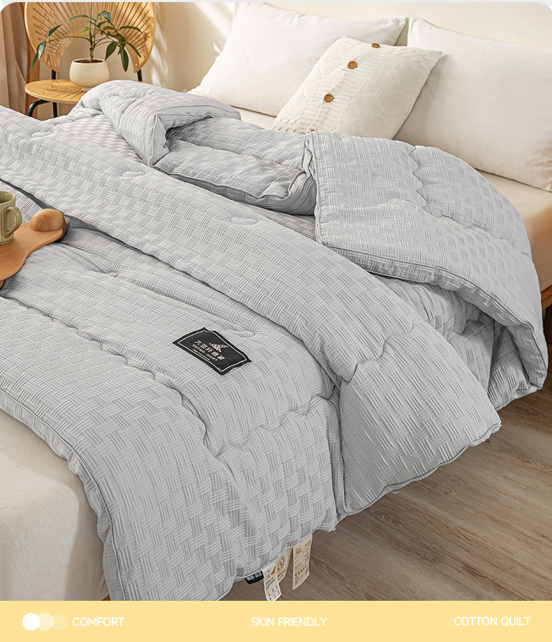 • 91家纺网 家纺一手货源 找家纺 玉相逢 2024新款直播华夫格大豆被冬被斜条包边订棉工艺水洗棉大豆被 流光灰