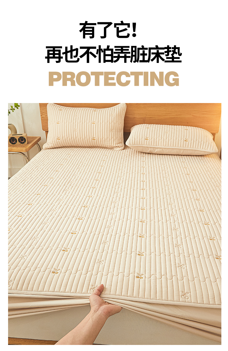 当前位置: 91家纺网 > 商品网购 > 床上用品 > 床笠 > 居眠 2024新款A类原棉大豆星星樱桃防水夹棉床笠 小樱桃-卡其