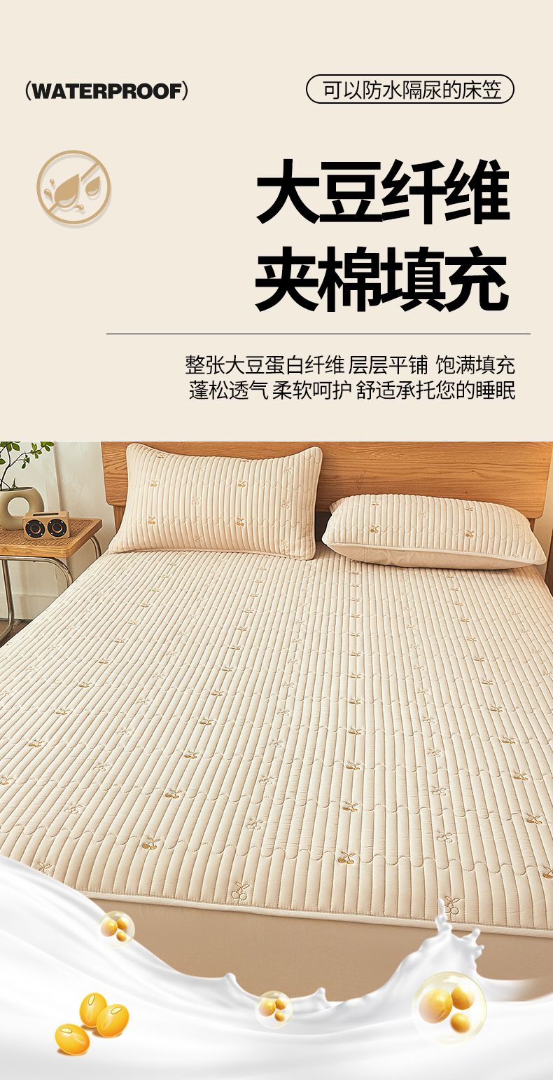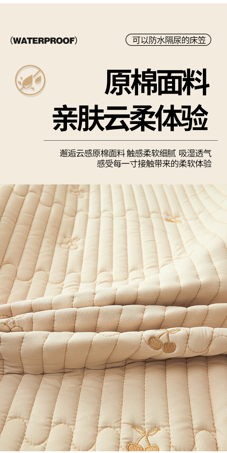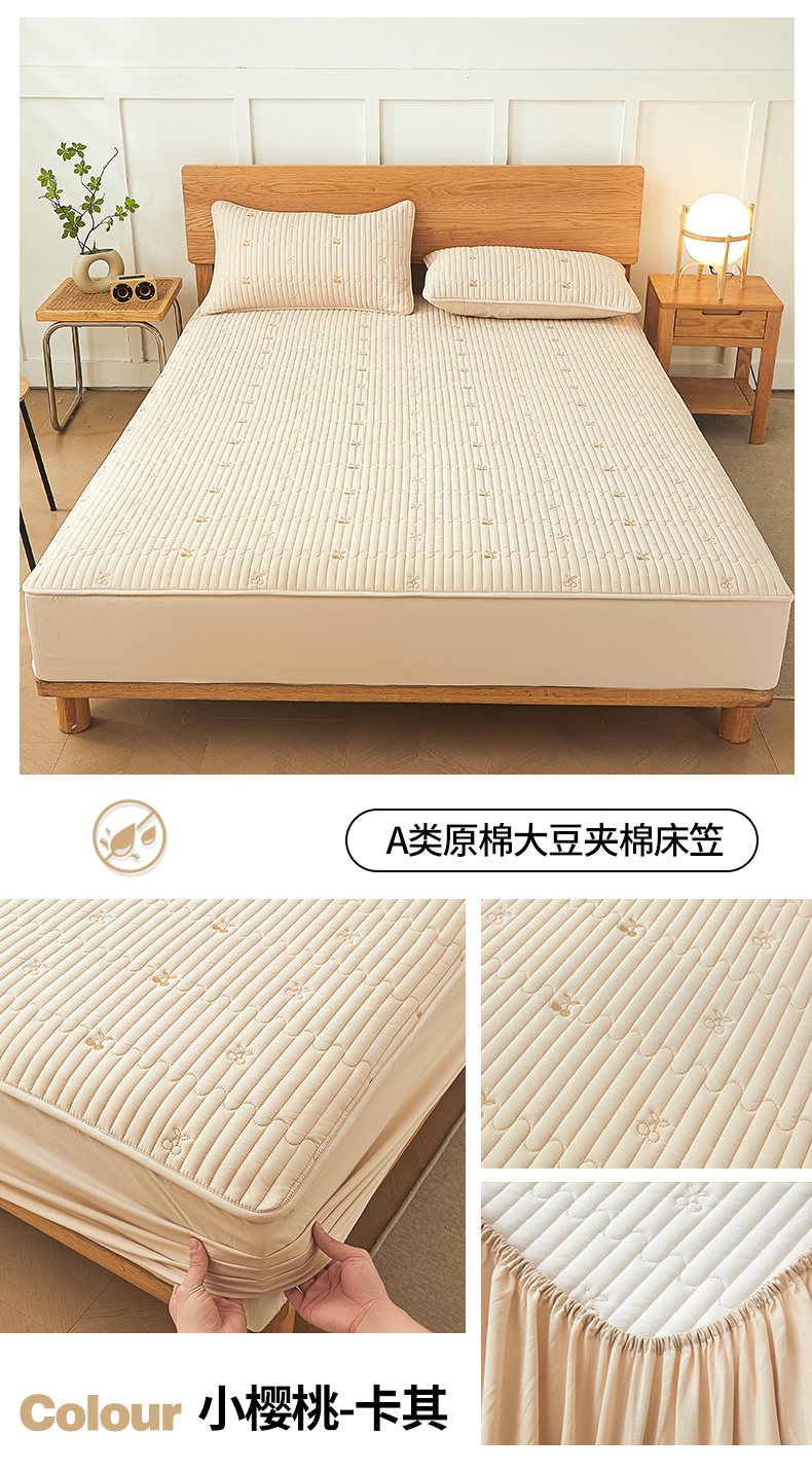 • 91家纺网 家纺一手货源 找家纺 居眠 2024新款A类原棉大豆星星樱桃防水夹棉床笠 小樱桃-卡其