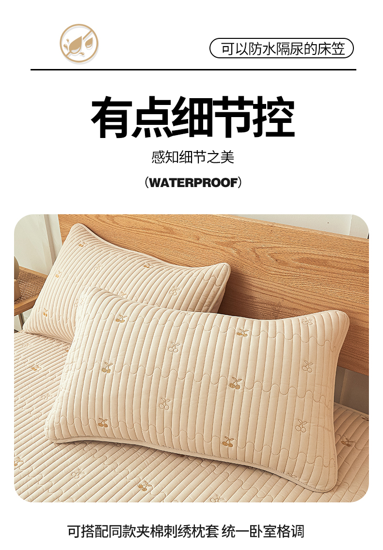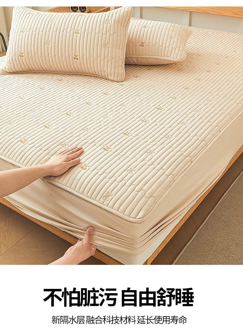 居眠 2024新款A类原棉大豆星星樱桃防水夹棉床笠 小樱桃-卡其