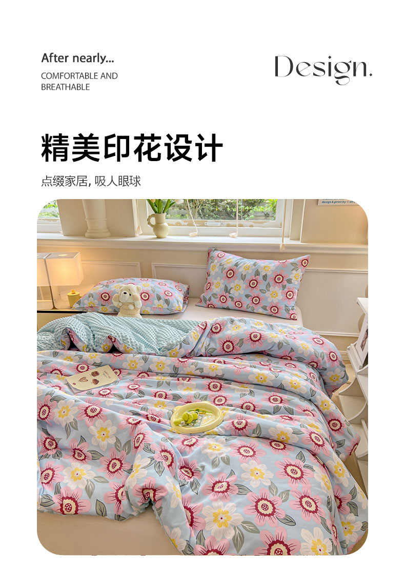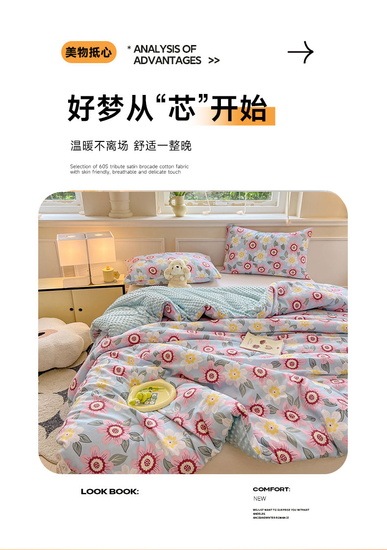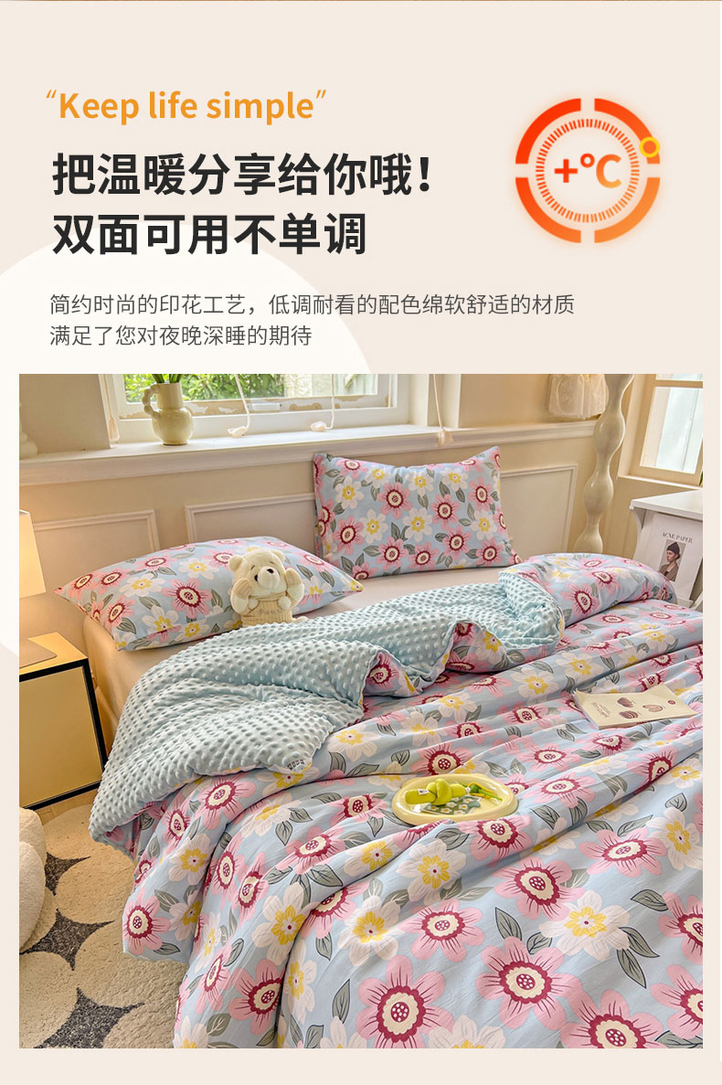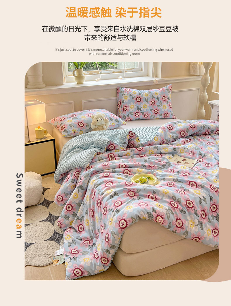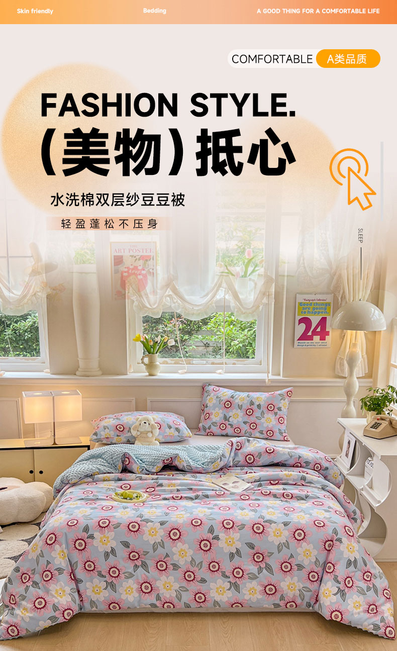• 91家纺网 家纺一手货源 找家纺 玉相逢 2024新款水洗棉双层纱豆豆被加绒被子被芯直播豆豆绒被被子被芯冬被春秋被 海棠朵朵