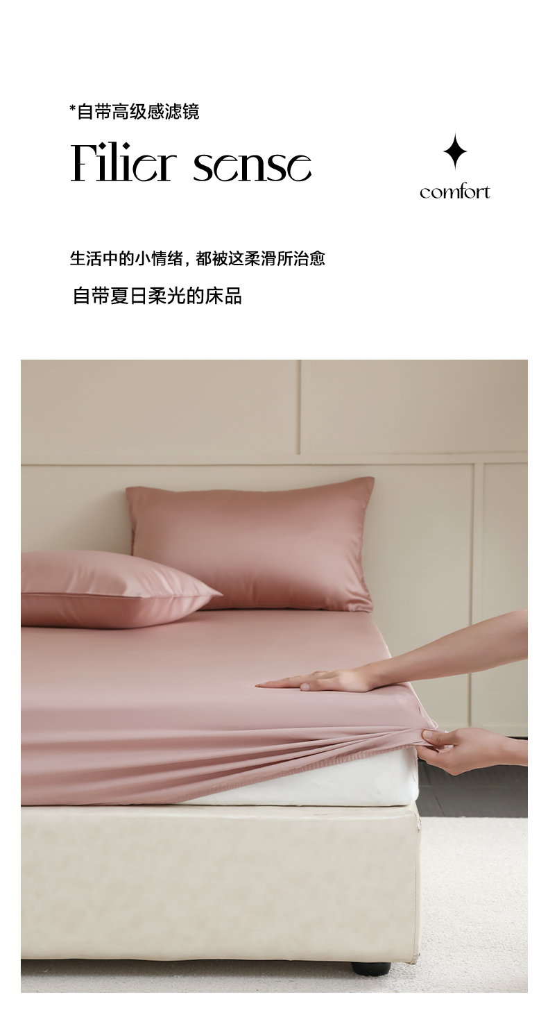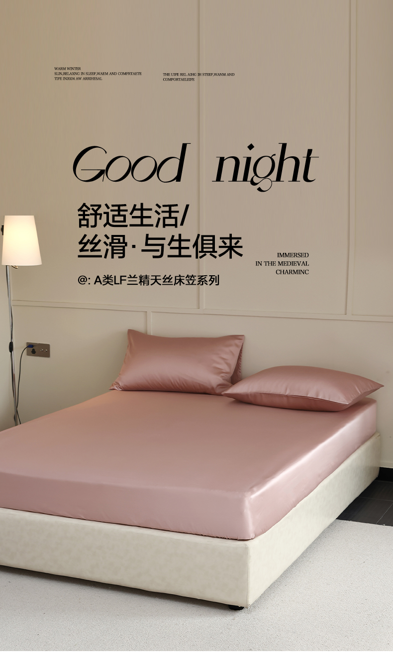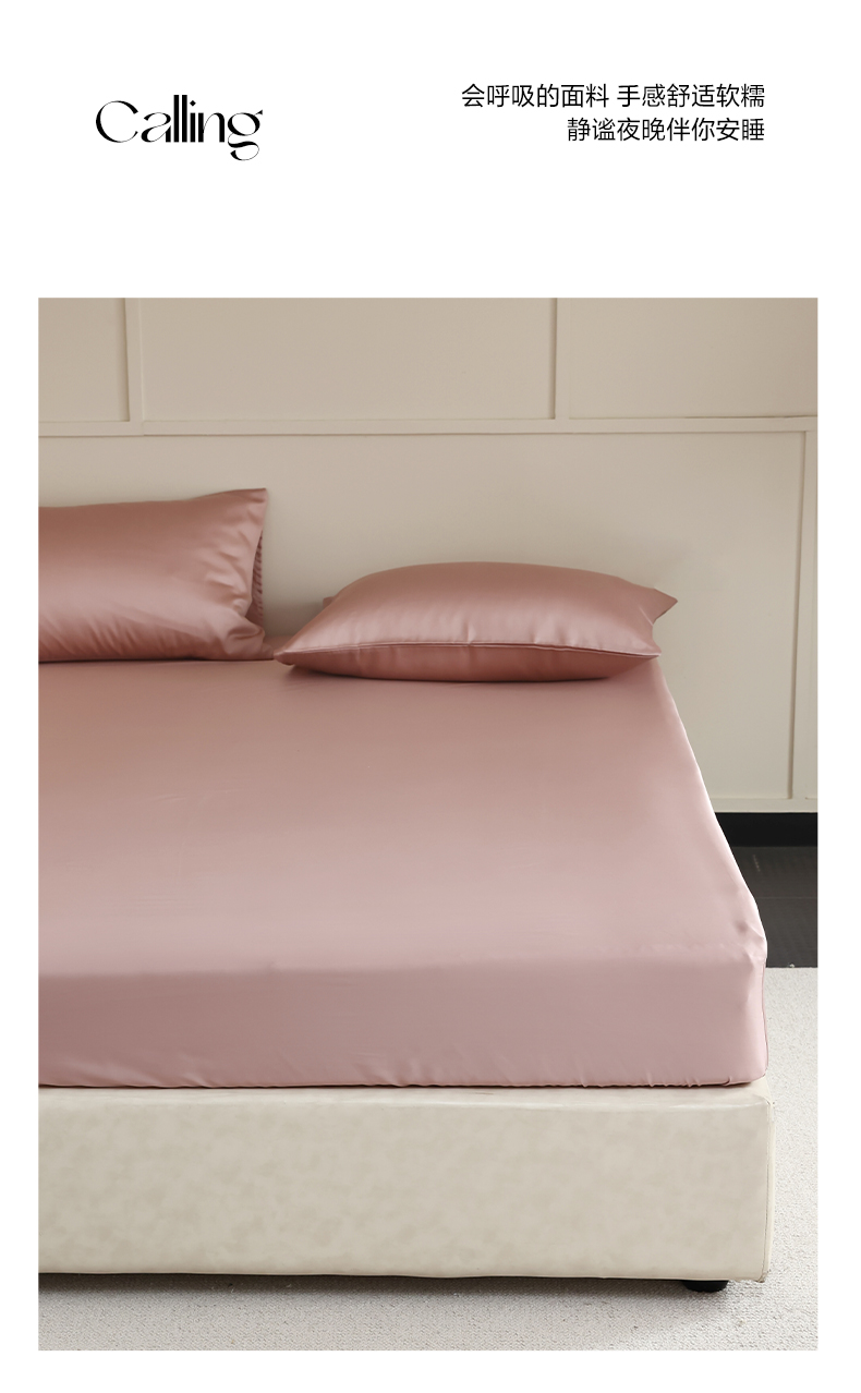 • 91家纺网 家纺一手货源 找家纺 轩和 2025新款A类LF60S兰精天丝单品床笠 胭脂粉