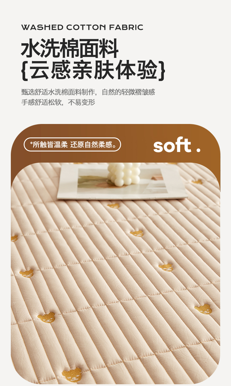 当前位置: 91家纺网 > 商品网购 > 床垫/床褥 > 普通床垫 > 叠派家纺 2024新款水洗棉刺绣床护垫 小熊-卡其