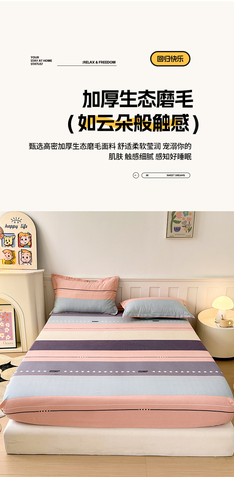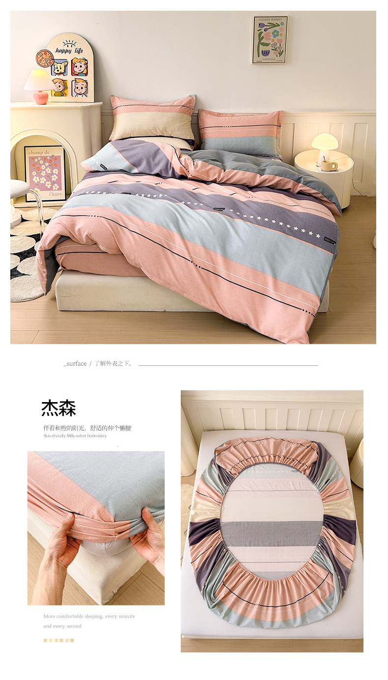 2025新款加厚生态磨毛床笠四件套 杰森