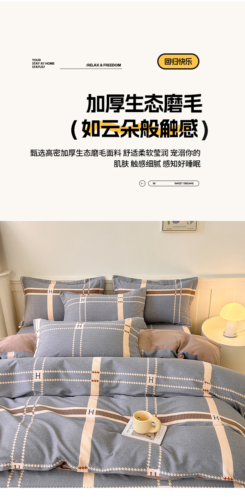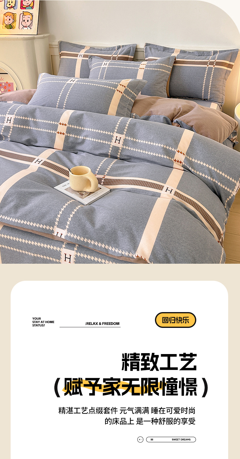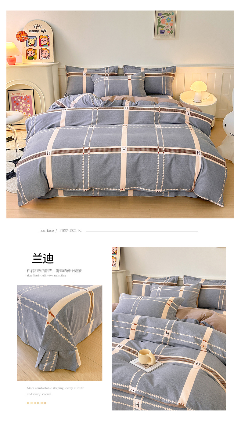 当前位置: 91家纺网 > 商品网购 > 床品套件 > 四件套 > 全棉普通四件套 > 2025新款加厚生态磨毛床单四件套 兰迪