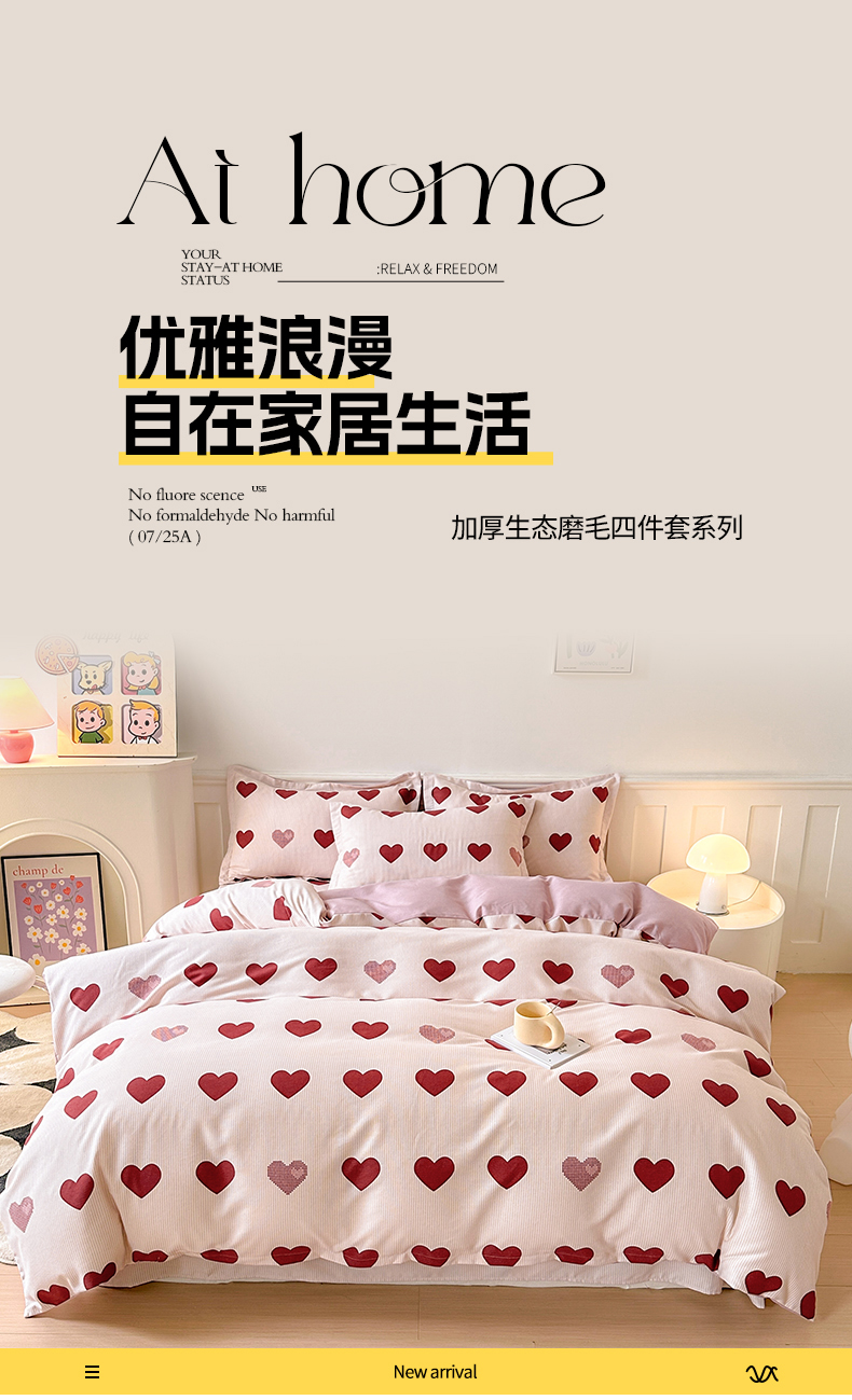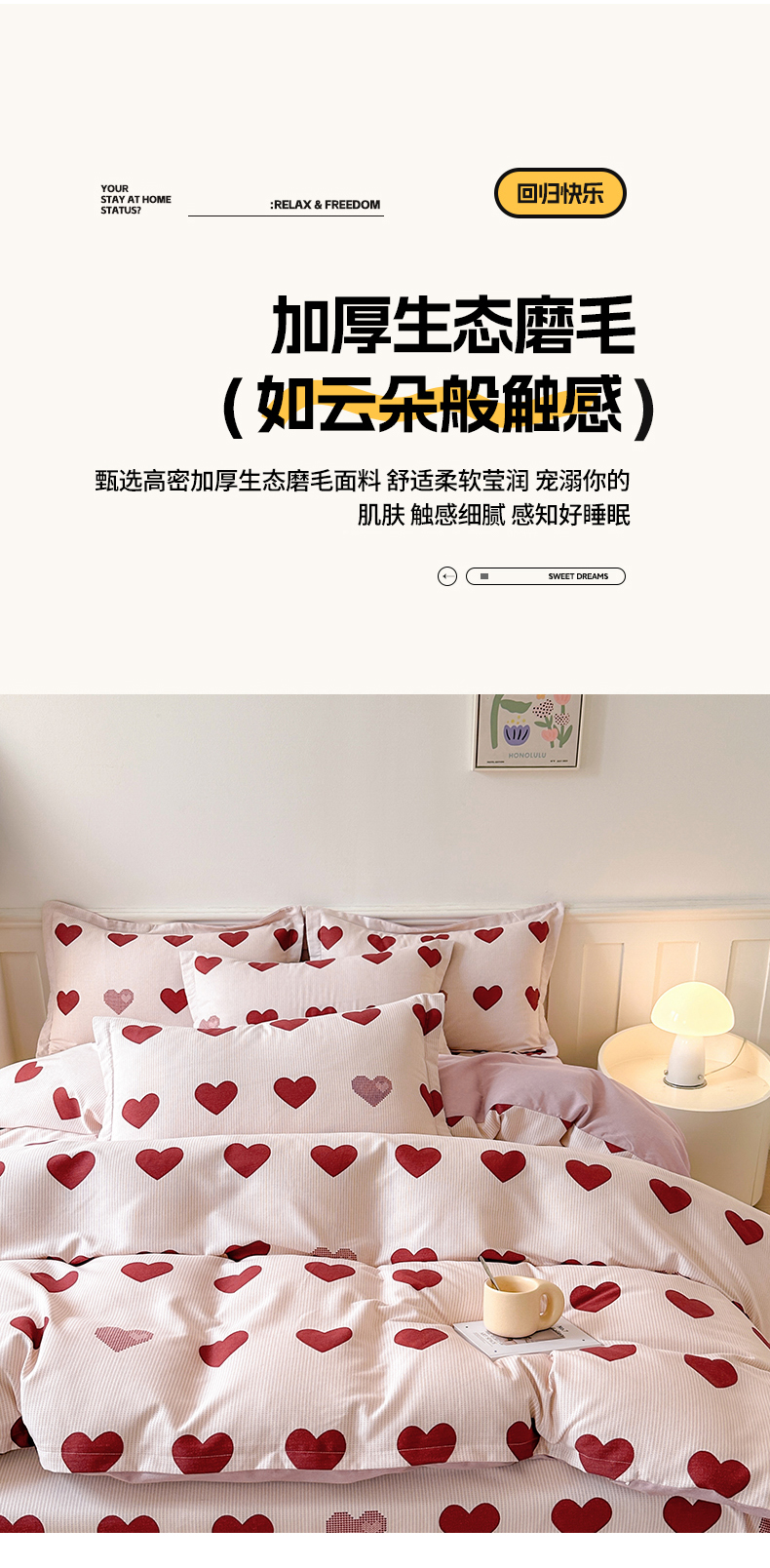 当前位置: 91家纺网 > 商品网购 > 床品套件 > 四件套 > 全棉普通四件套 > 2025新款加厚生态磨毛床单四件套 完美恋人