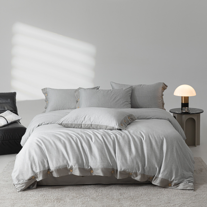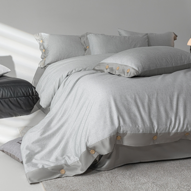 栩裕纺织 2024新款丝棉臻绒磨毛数码印花四件套--兰羽系列 兰羽-浅灰