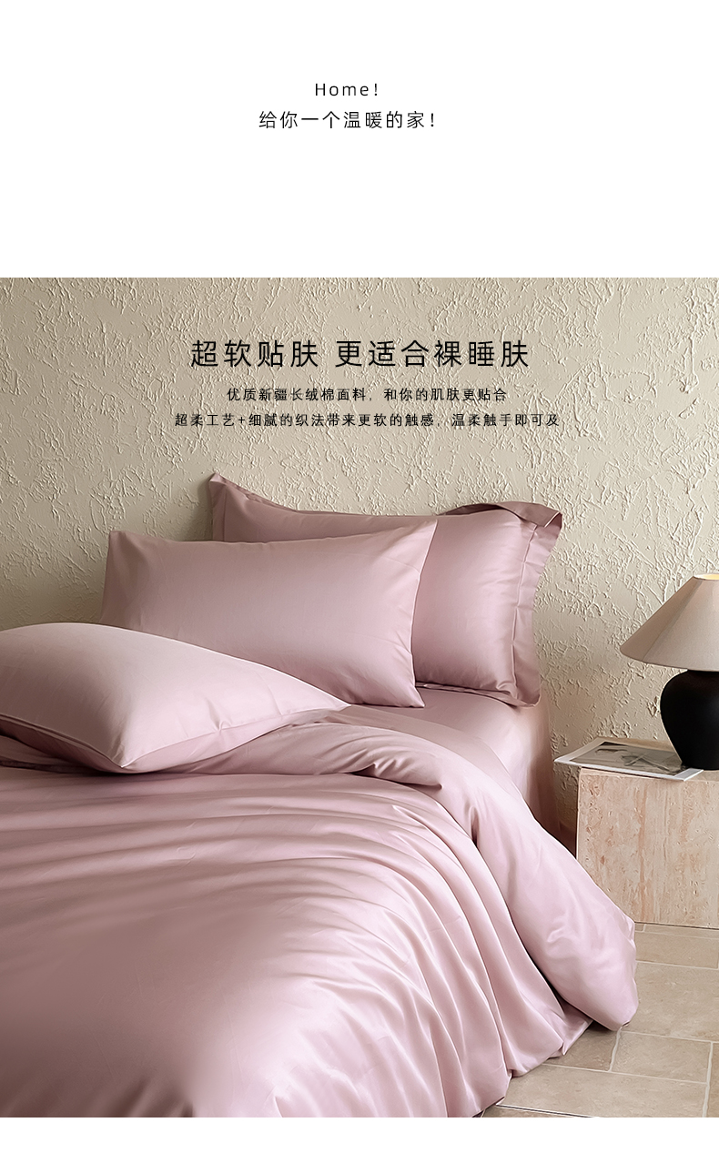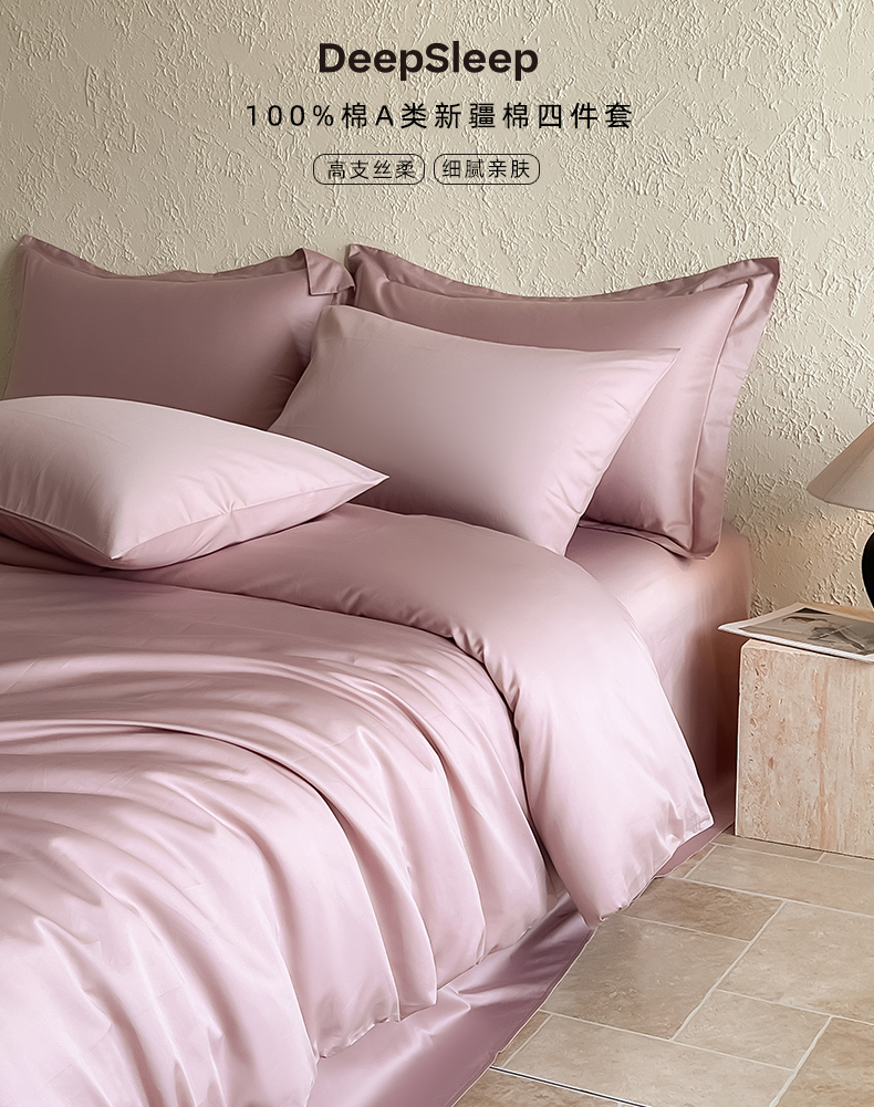 商品名称:Mr.pig猪先生水洗棉 2024新品A类100全棉高支高密贡缎新疆长绒棉四件套纯棉床单被套学生宿舍三件套枕套床笠床上用品 清新粉