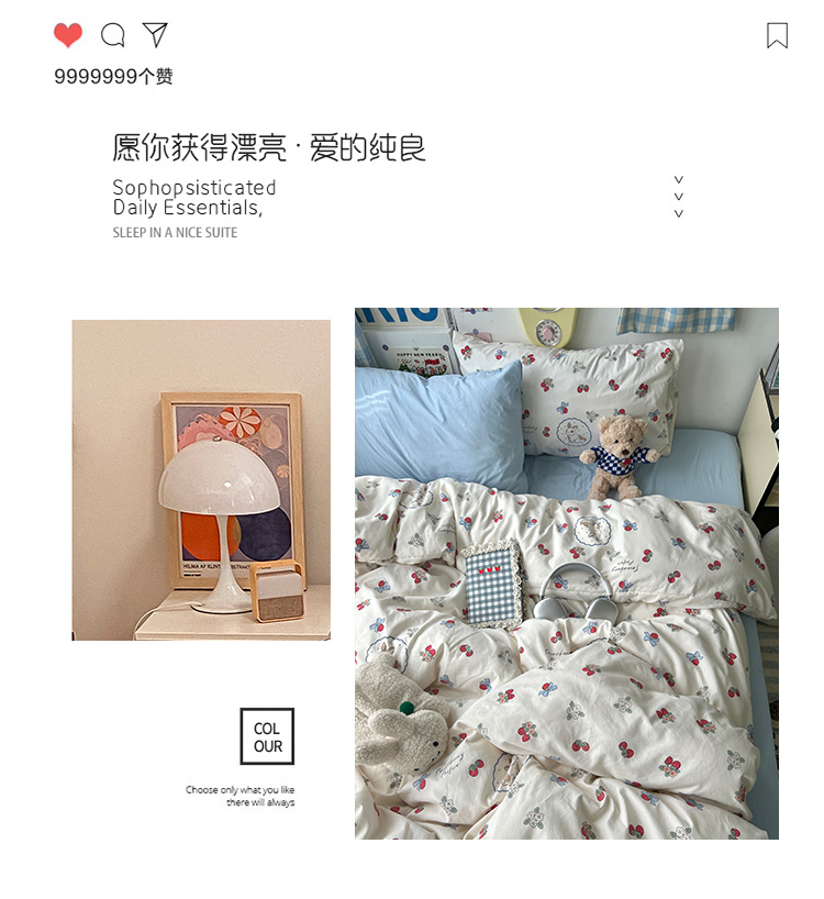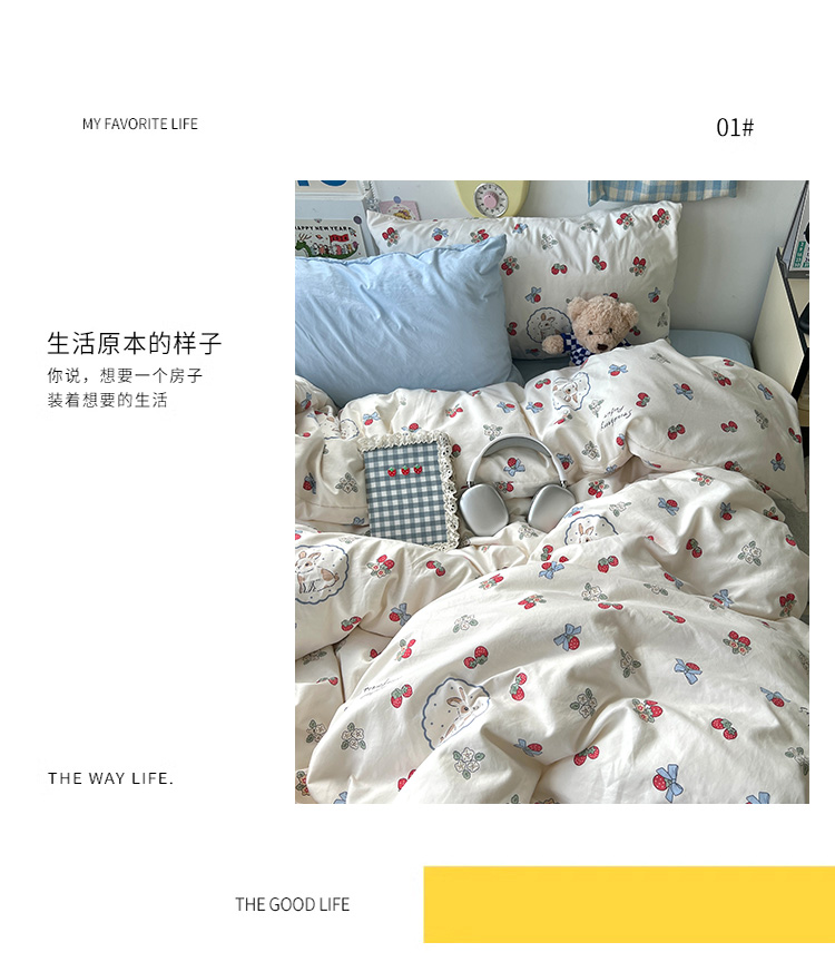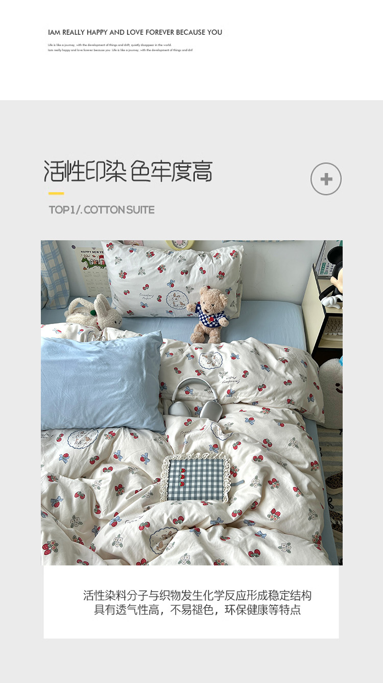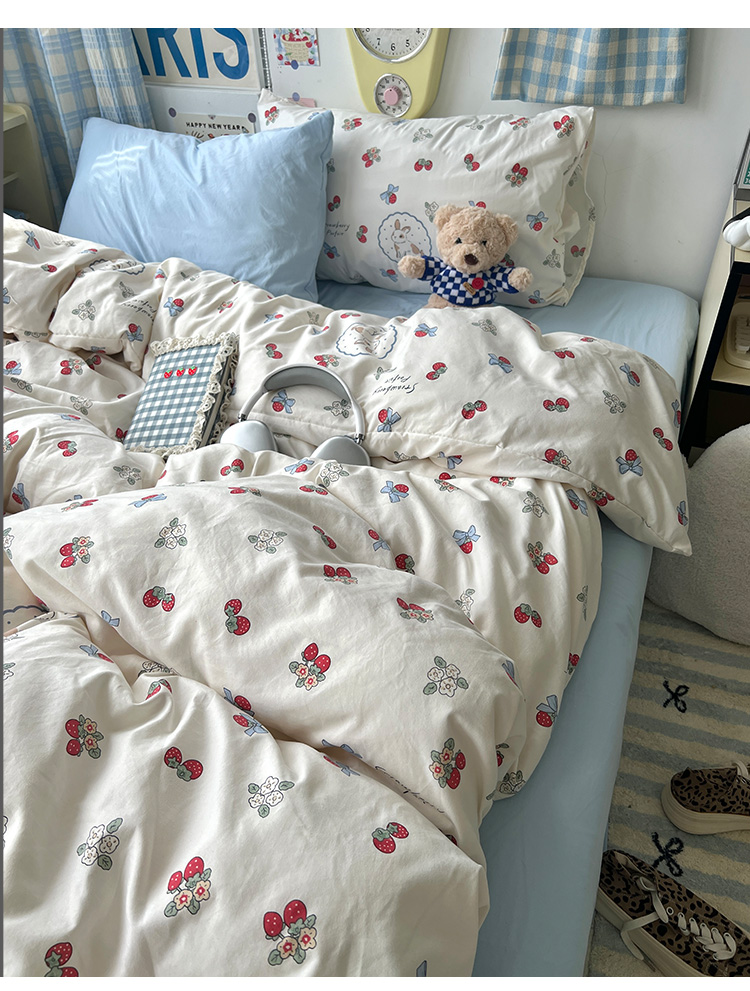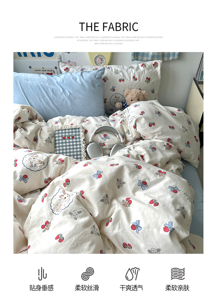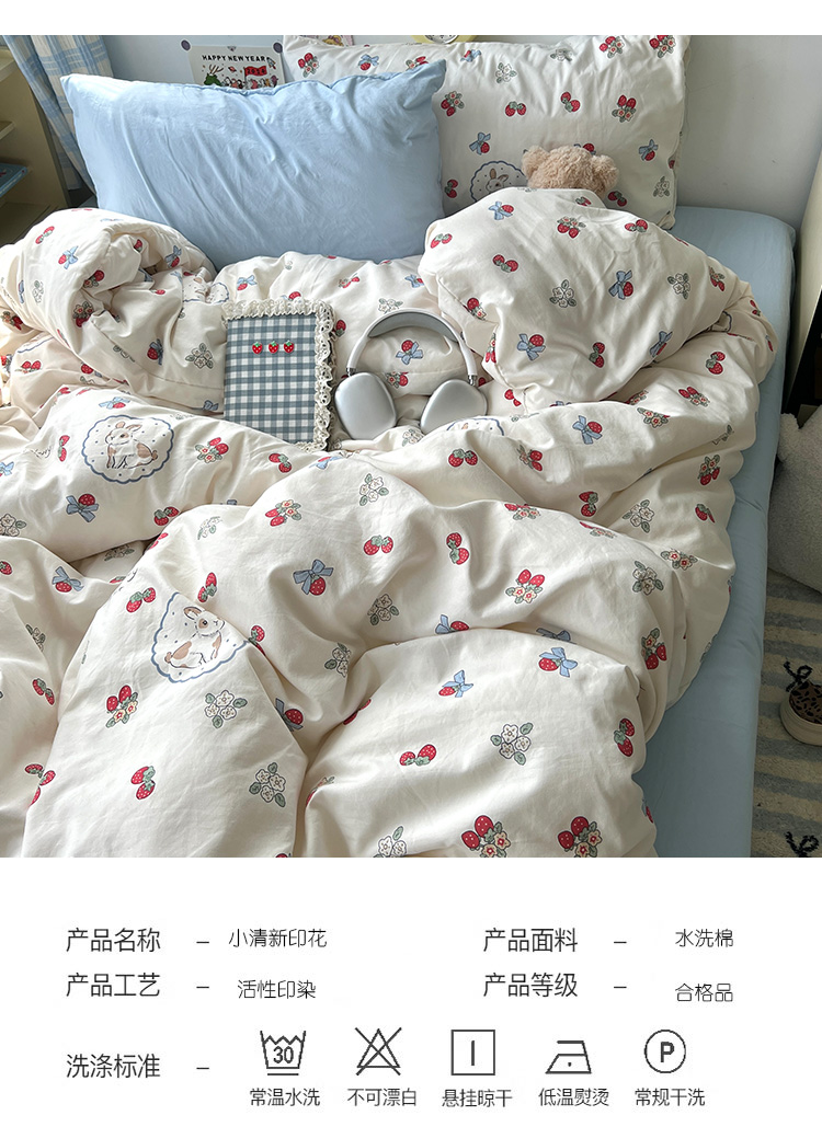 当前位置: 91家纺网 > 商品网购 > 床品套件 > 四件套 > 水洗棉四件套 > 原素 2024学生季专属A类水洗棉印花四件套 草莓物语