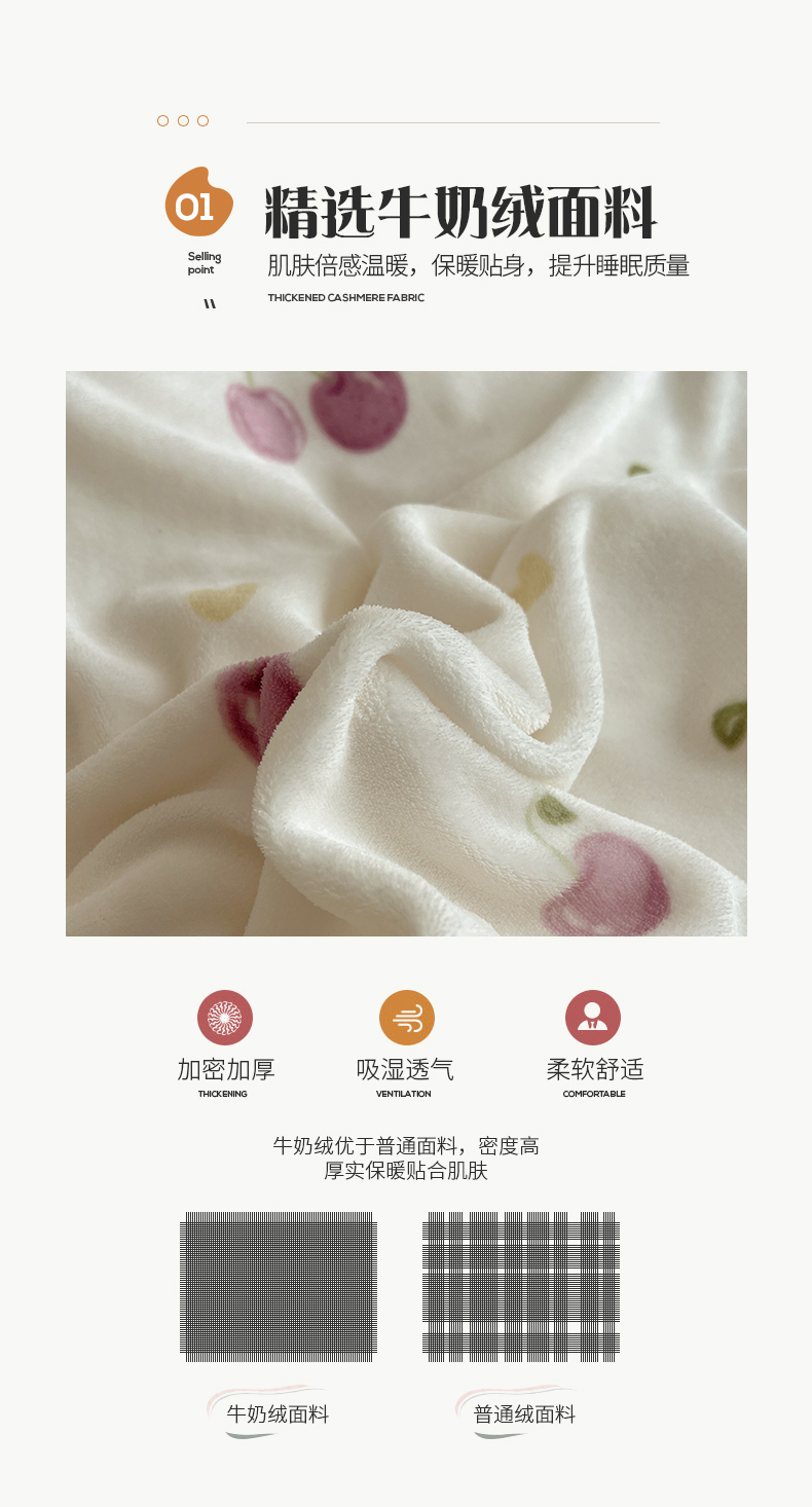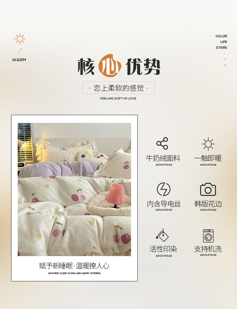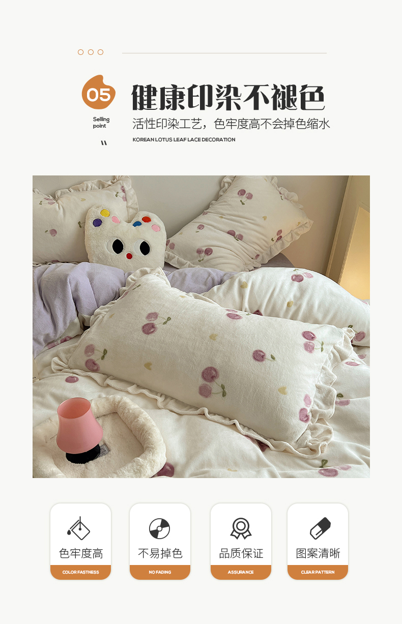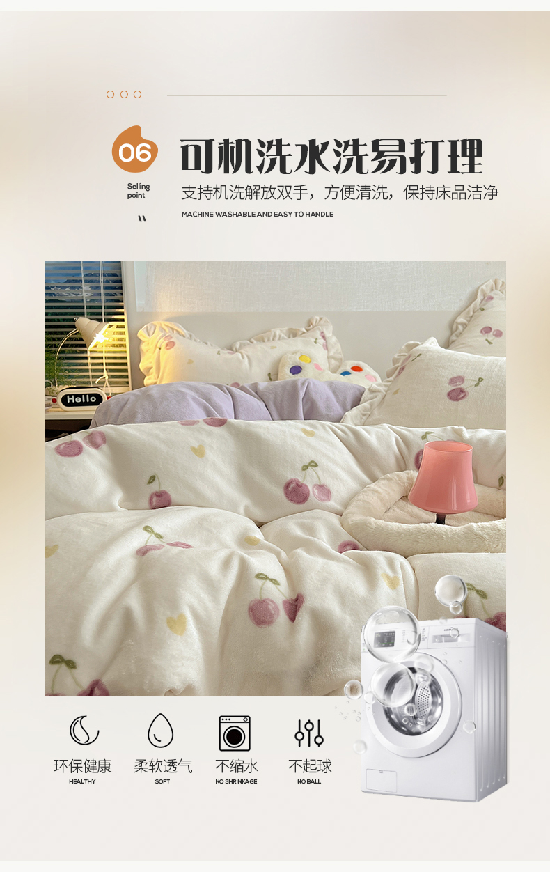 桃子家居 2024新款A类ins韩版花边少女心加厚牛奶绒四件套 绒-花边紫樱桃