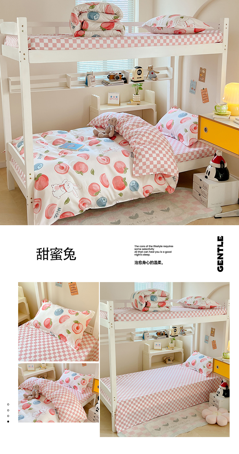 当前位置: 91家纺网 > 商品网购 > 床品套件 > 三件套 > 卡斯诺家纺馆 2025新款芦荟棉宿舍床上下铺三件套 甜蜜兔