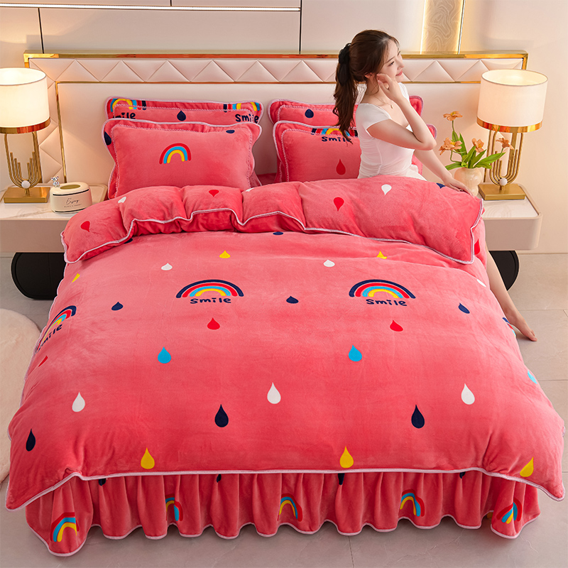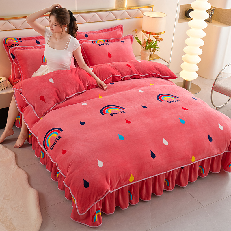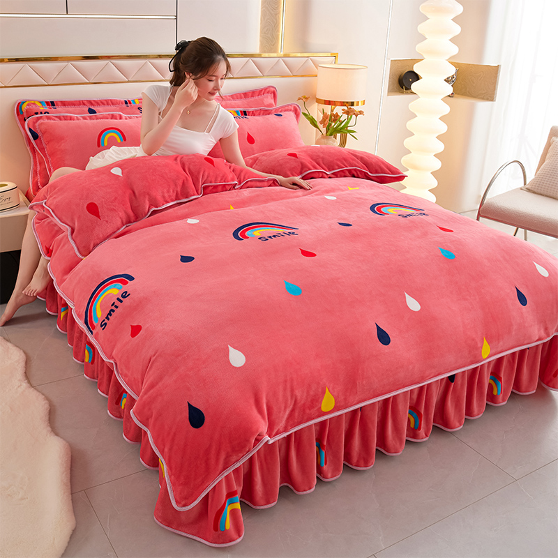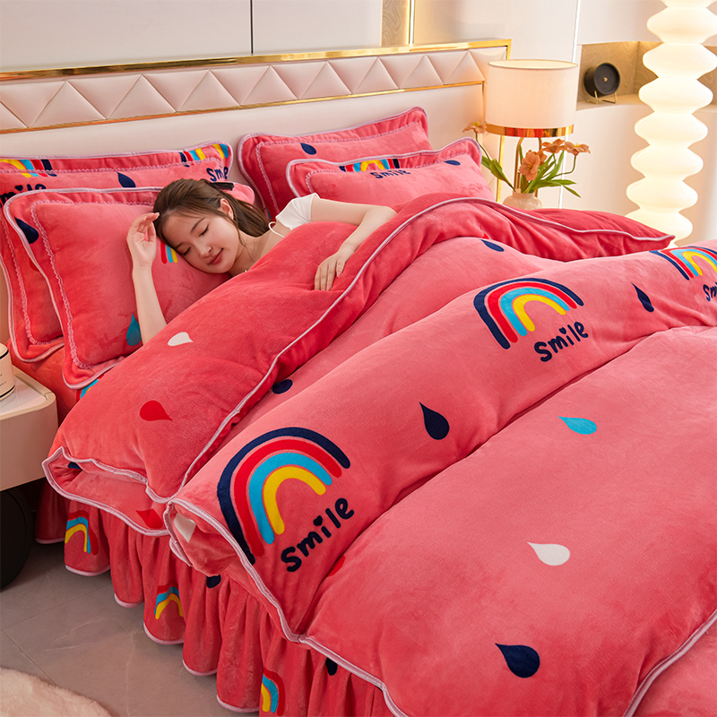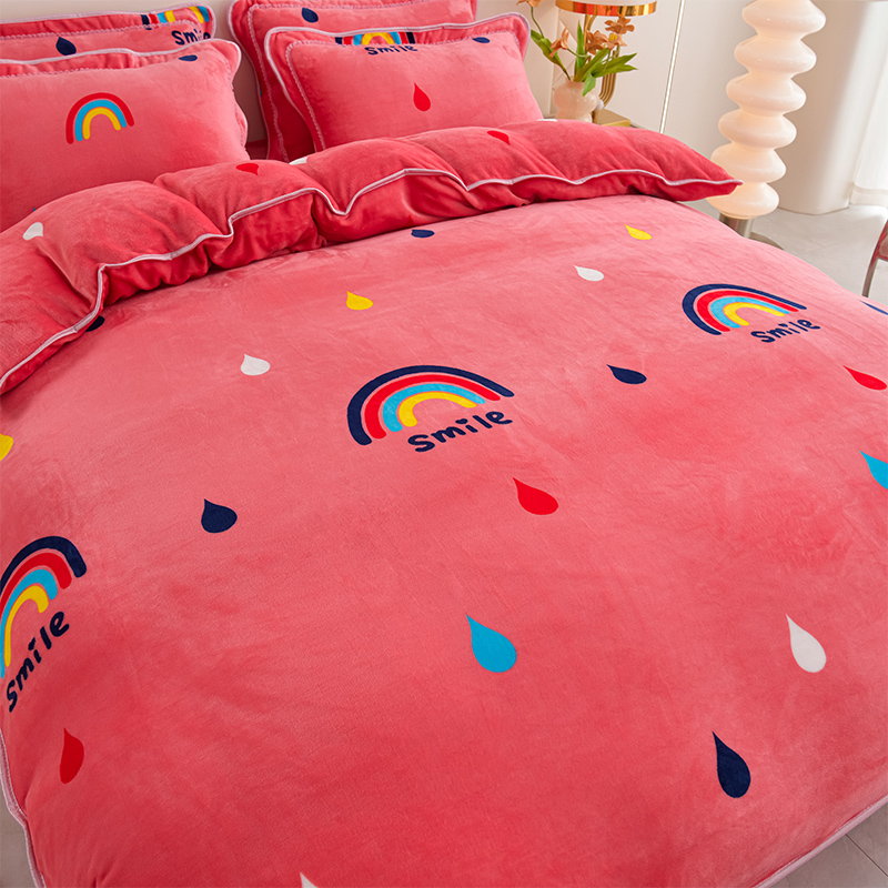 爱洛家纺 2024新款高克重牛奶绒印花四件套 彩虹