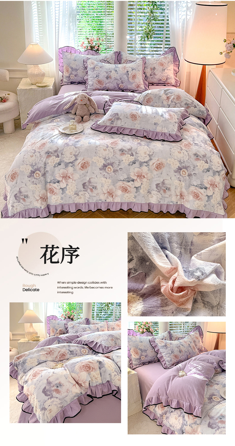 商品名称:韩约家纺 2024秋冬加厚1针织棉时尚花边款四件套 花序