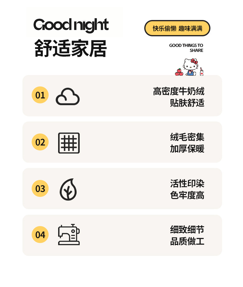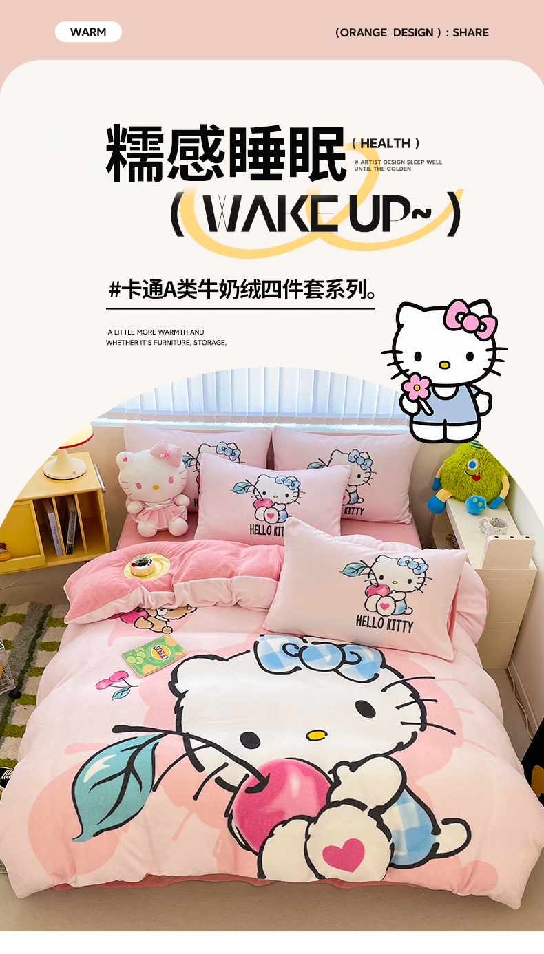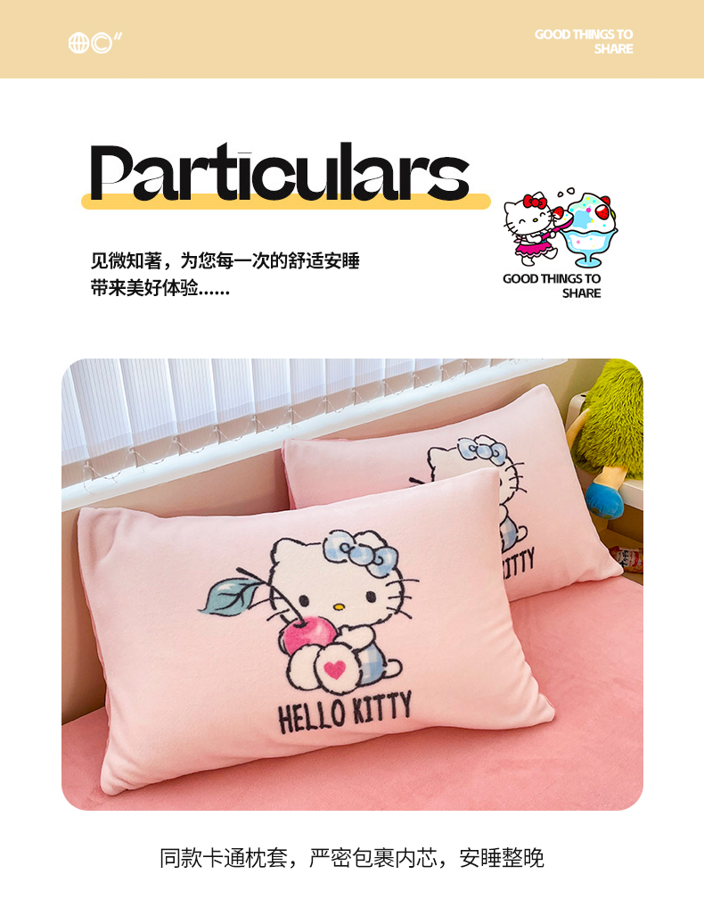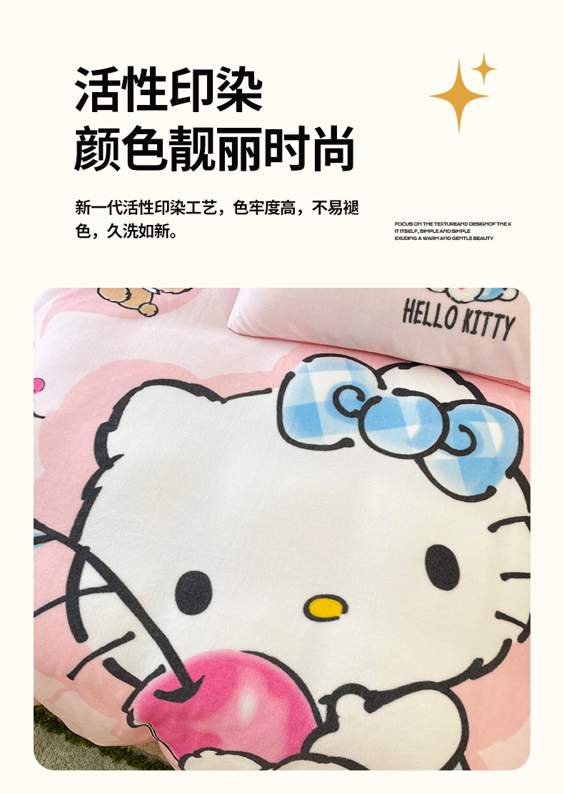 商品名称:米帛家纺 2024新款正版授权大版三丽鸥牛奶绒四件套 樱桃凯蒂猫