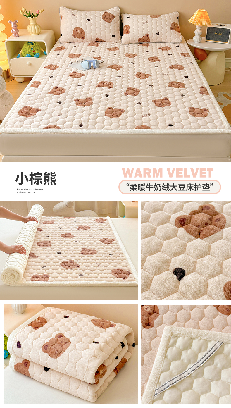 当前位置: 91家纺网 > 商品网购 > 床垫/床褥 > 普通床垫 > 伊人坊 2024新款牛奶绒印花大豆夹棉床护垫 小棕熊