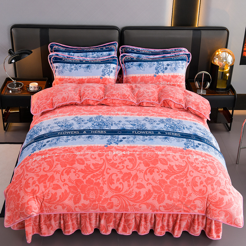 千嘻汇 2025新款7斤牛奶绒金貂法莱绒床裙款保暖绒四件套 花语,花语