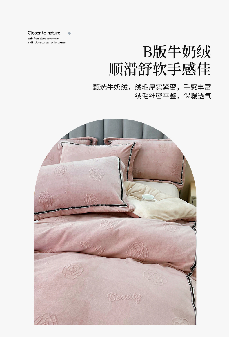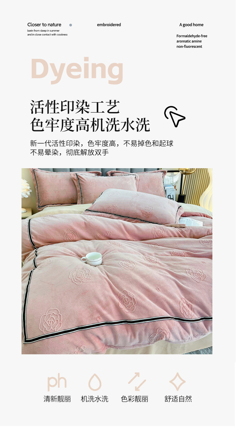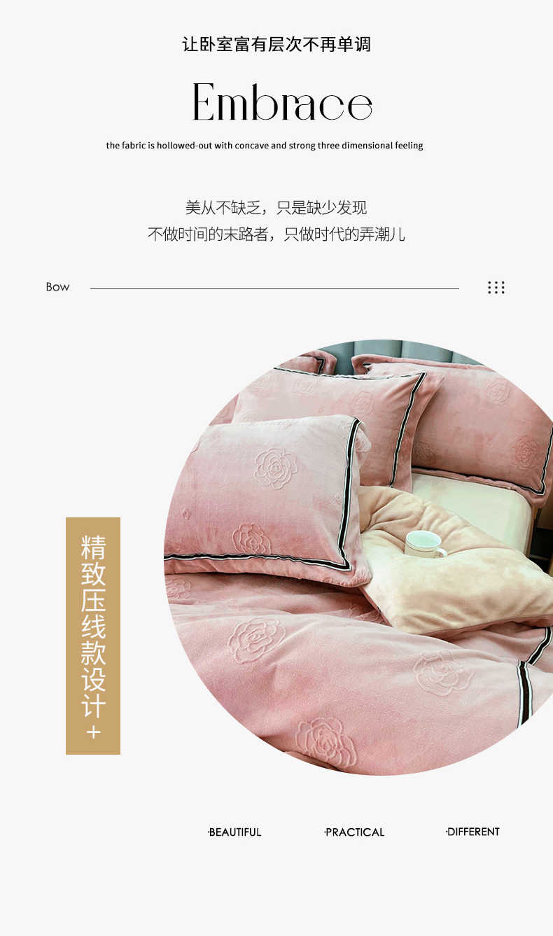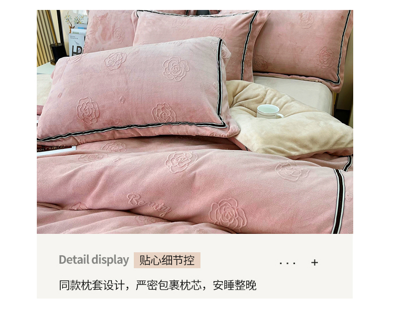商品名称:鑫利来家纺 2024新款牛奶绒雕花压线款四件套 山茶花-豆沙