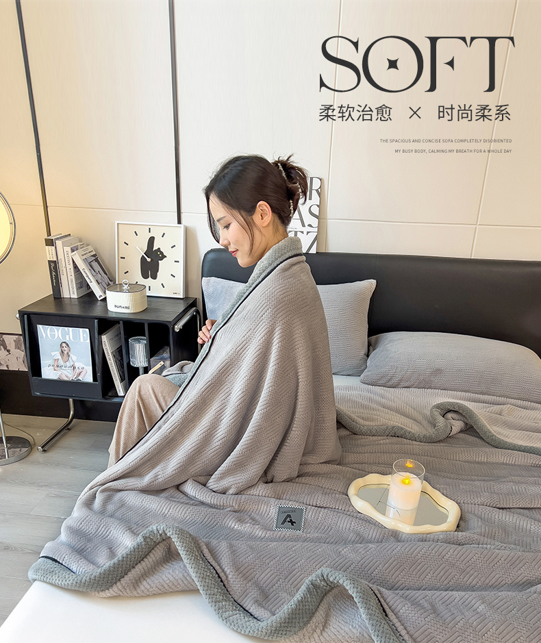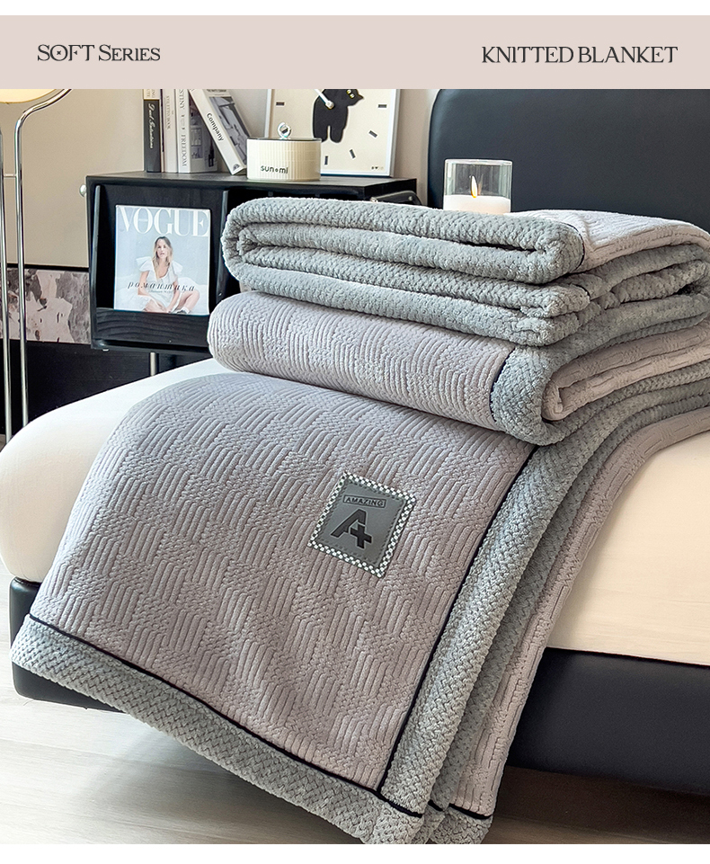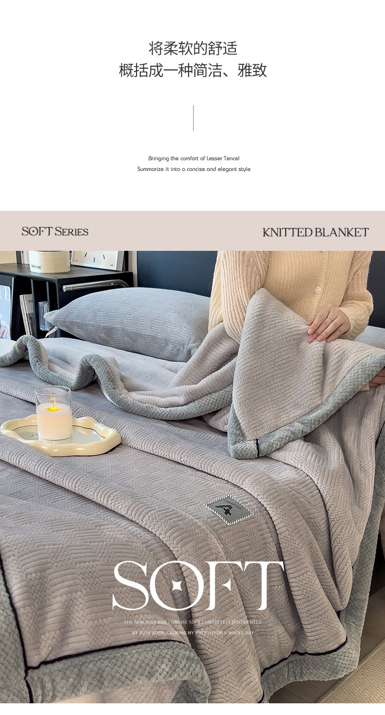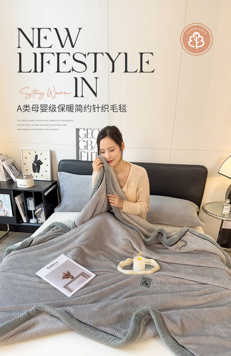 世纪绒品 2025新款A类母婴级保暖简约针织毯毛毯毯子 气质灰(灰边)