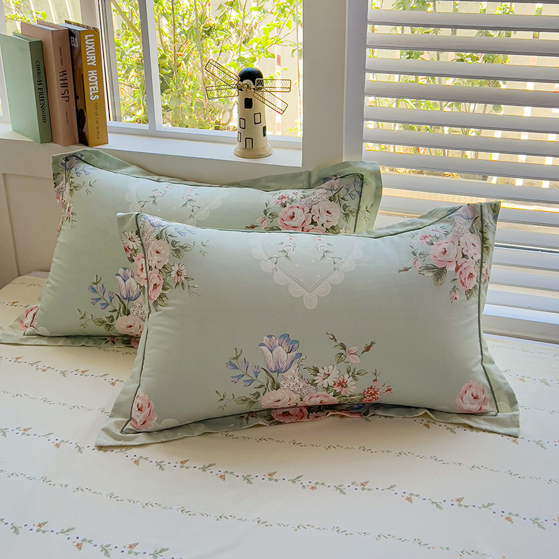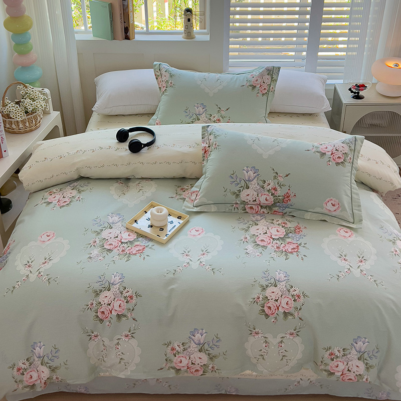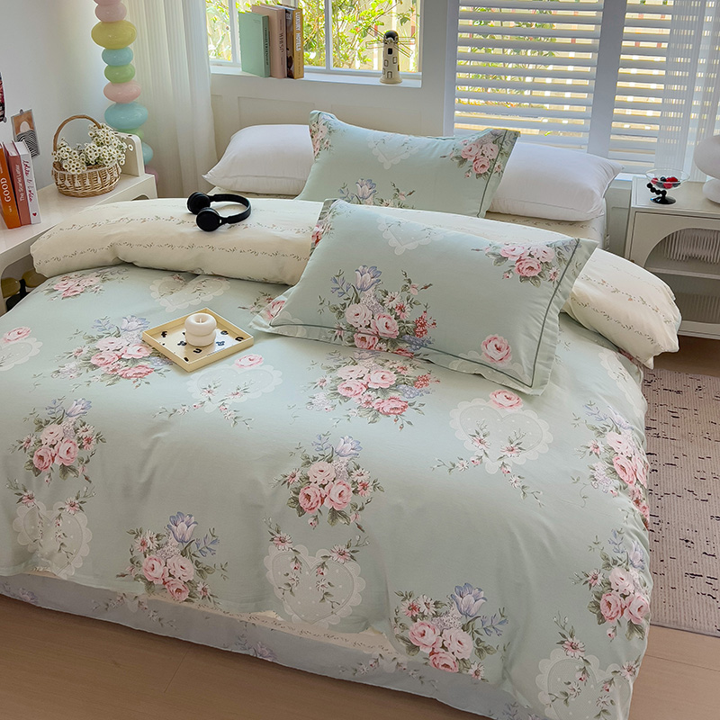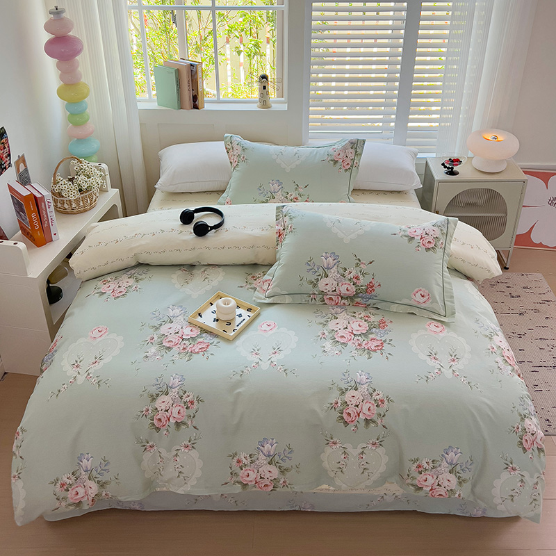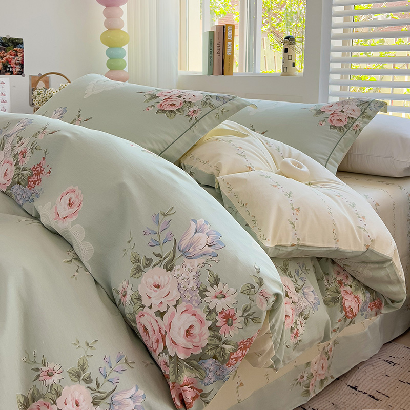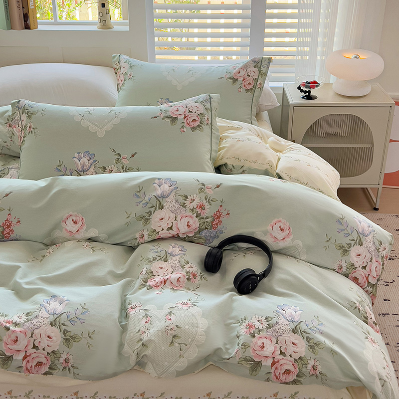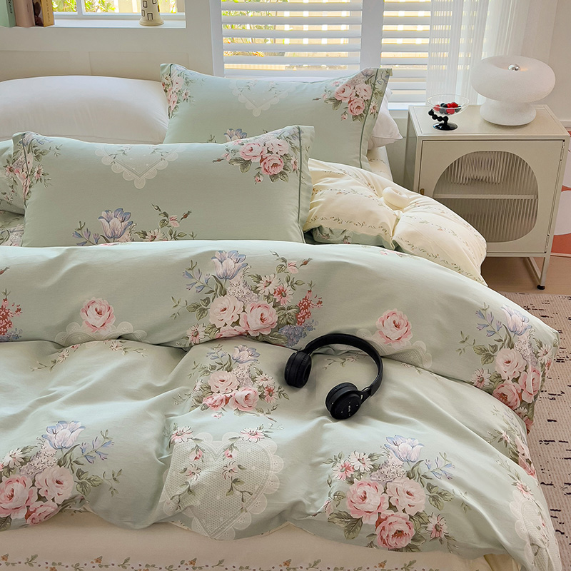 乐童家纺 2024新款直播热款13070纯棉印花吊边款一字绣四件套(十一) 风中花影-绿
