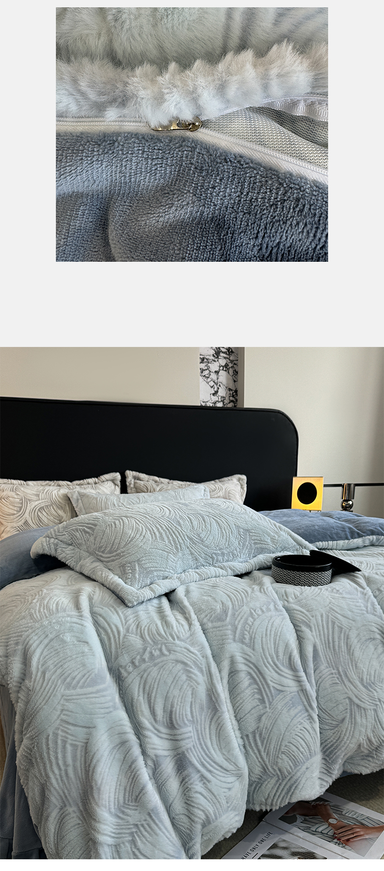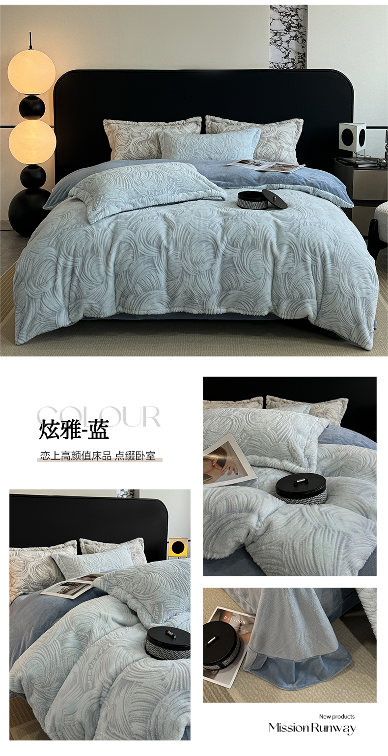 商品名称:帅露家纺 2024新款加厚兔绒雕花保暖四件套【提供买家秀】 炫雅-蓝