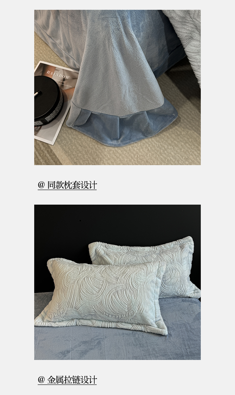 帅露家纺 2024新款加厚兔绒雕花保暖四件套【提供买家秀】 炫雅-蓝