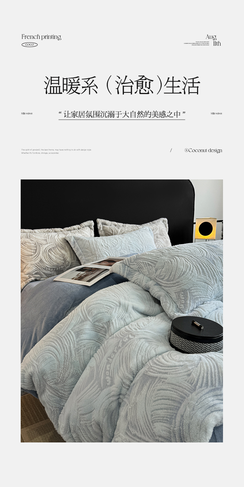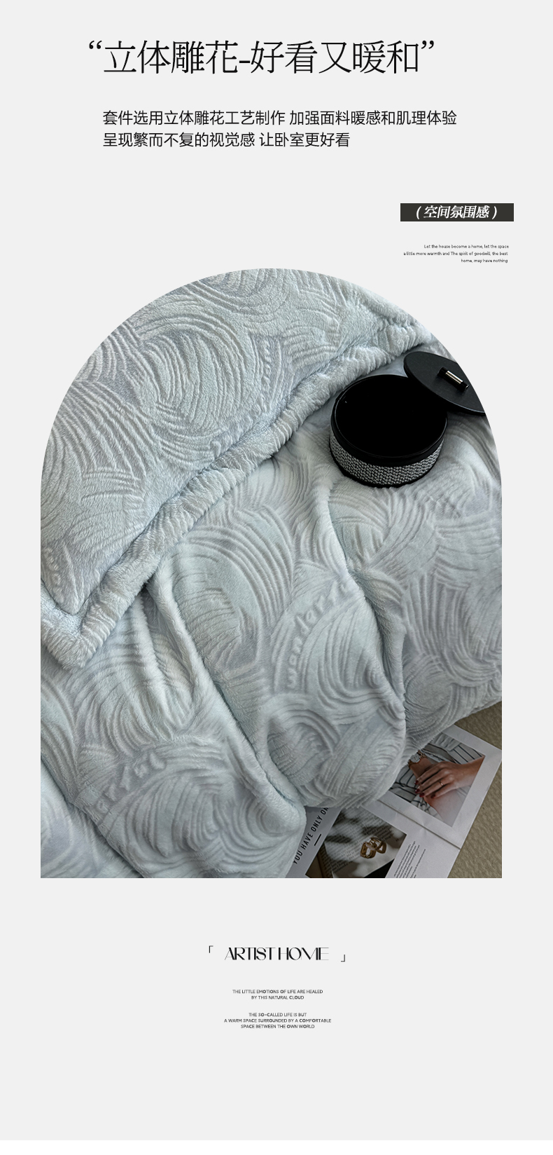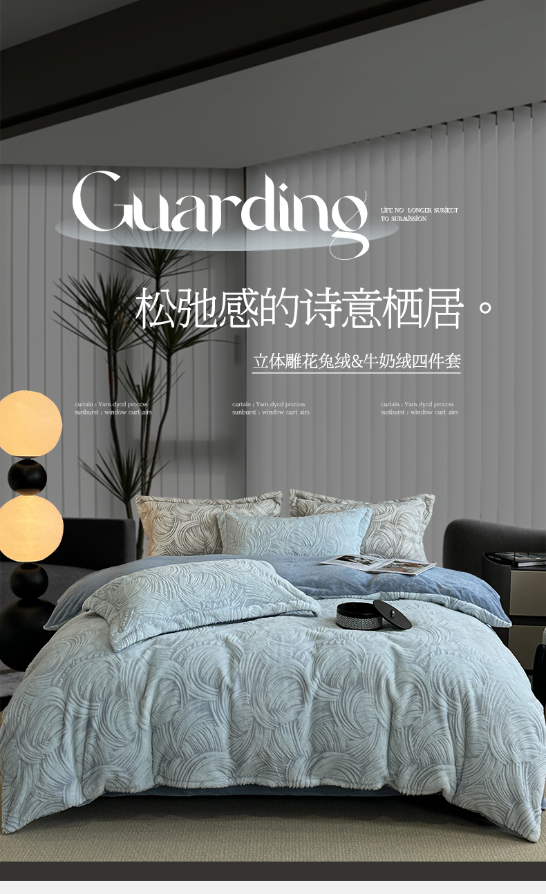(总)帅露家纺 2025秋冬新款A类高克重着色烂花立体雕花牛奶绒纽扣款四件套,暗香,蝶栖,浮光-灰,浮光-卡其,芒星-紫,芒星-棕,雾棱-卡其,雾棱-蓝,弦裂,叶络