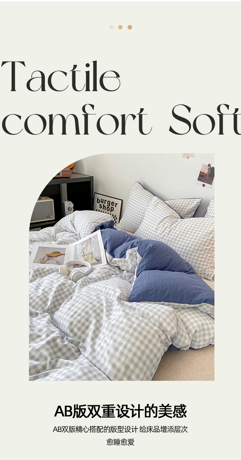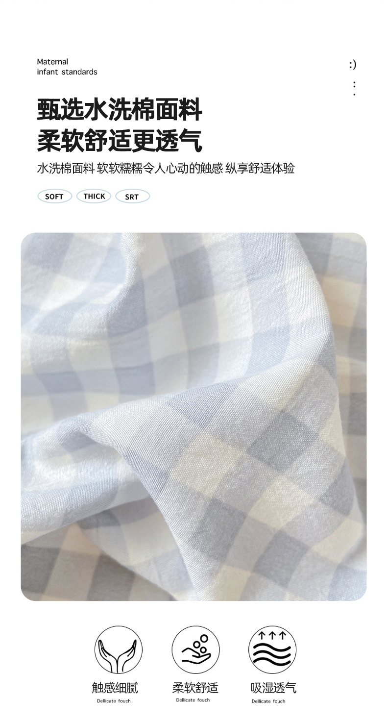 商品名称:悦织湾家纺 2025新款日式简约格子水洗棉单品被套系列 布丁灰
