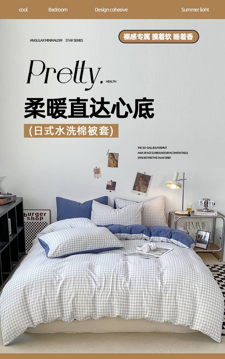 悦织湾家纺 2025新款日式简约格子水洗棉单品被套系列 布丁灰