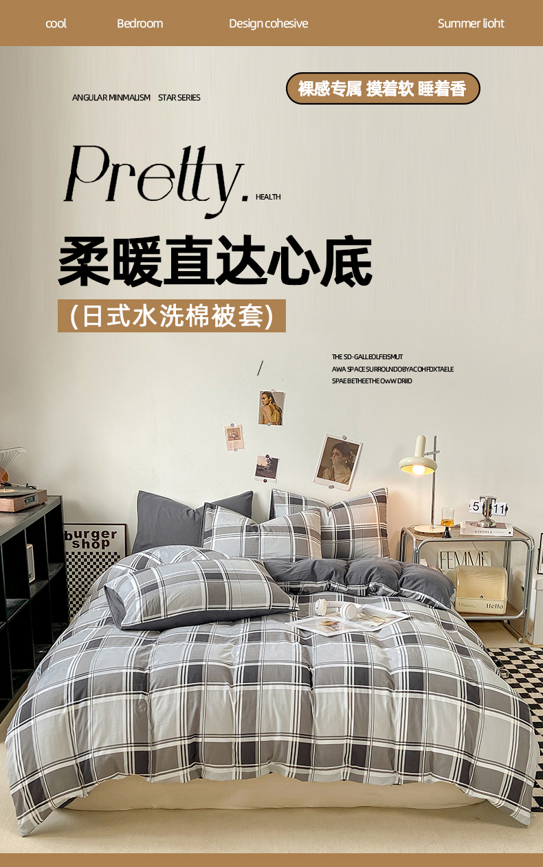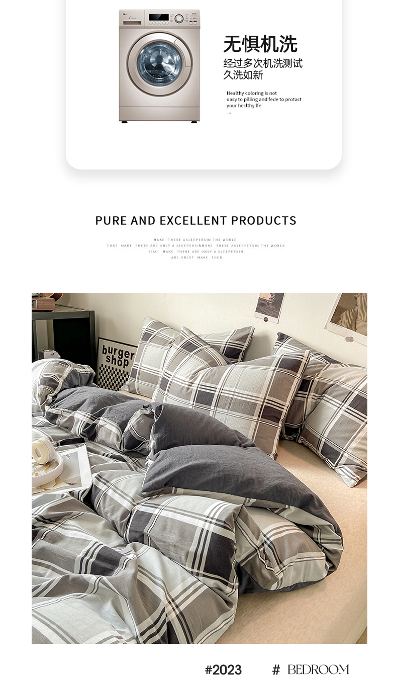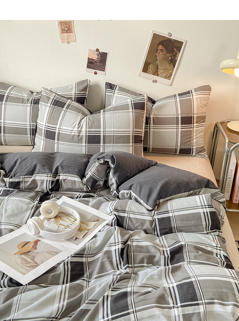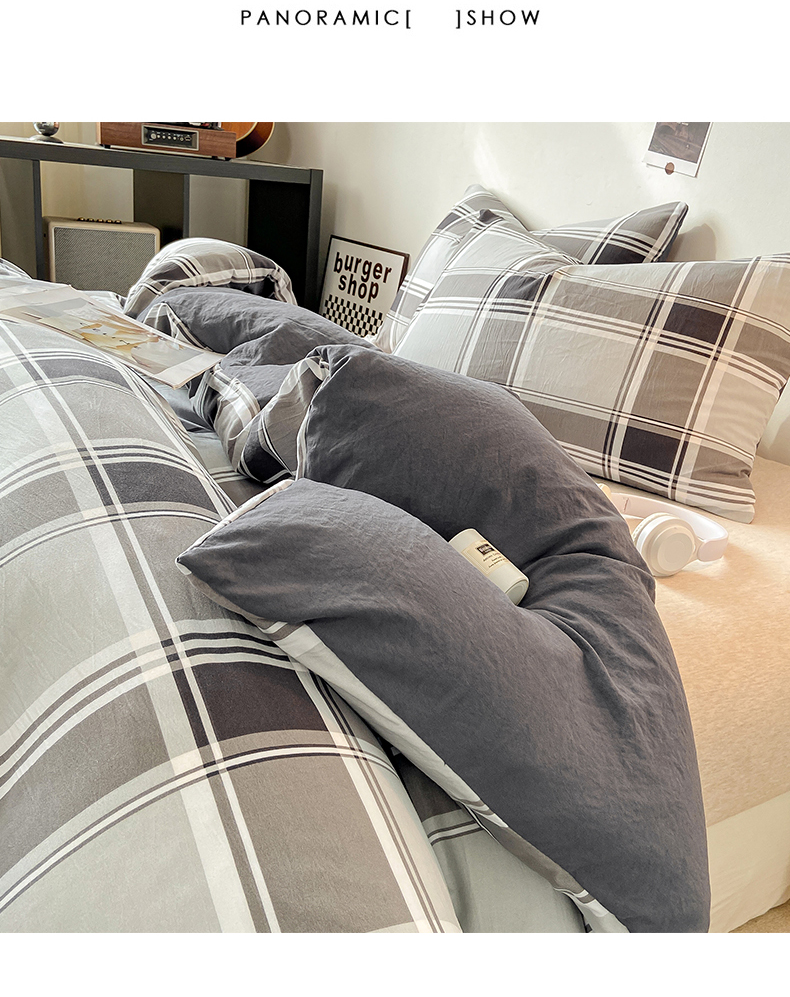 悦织湾家纺 2025新款日式简约格子水洗棉单品被套系列 绅士灰