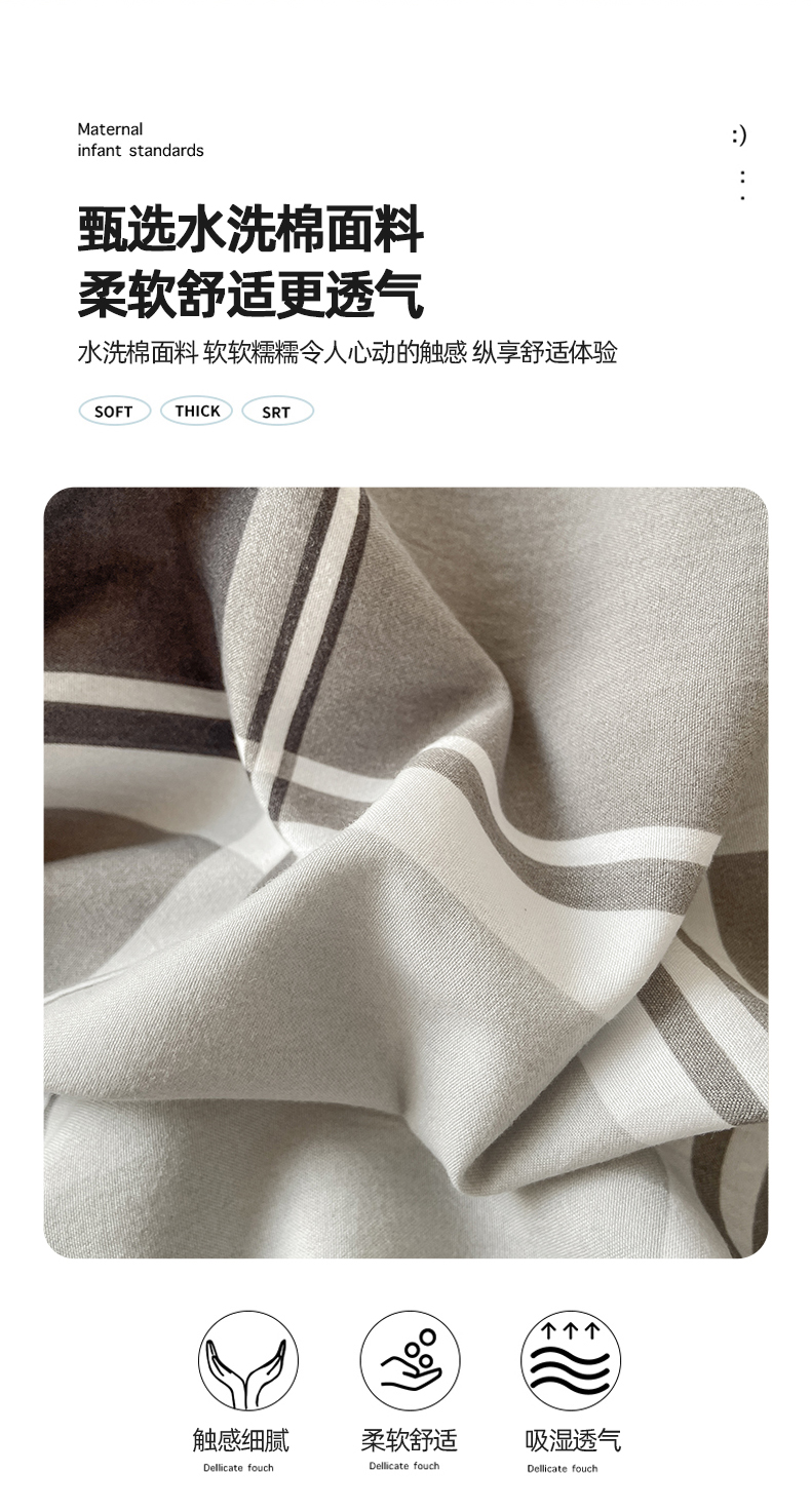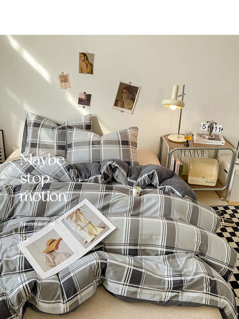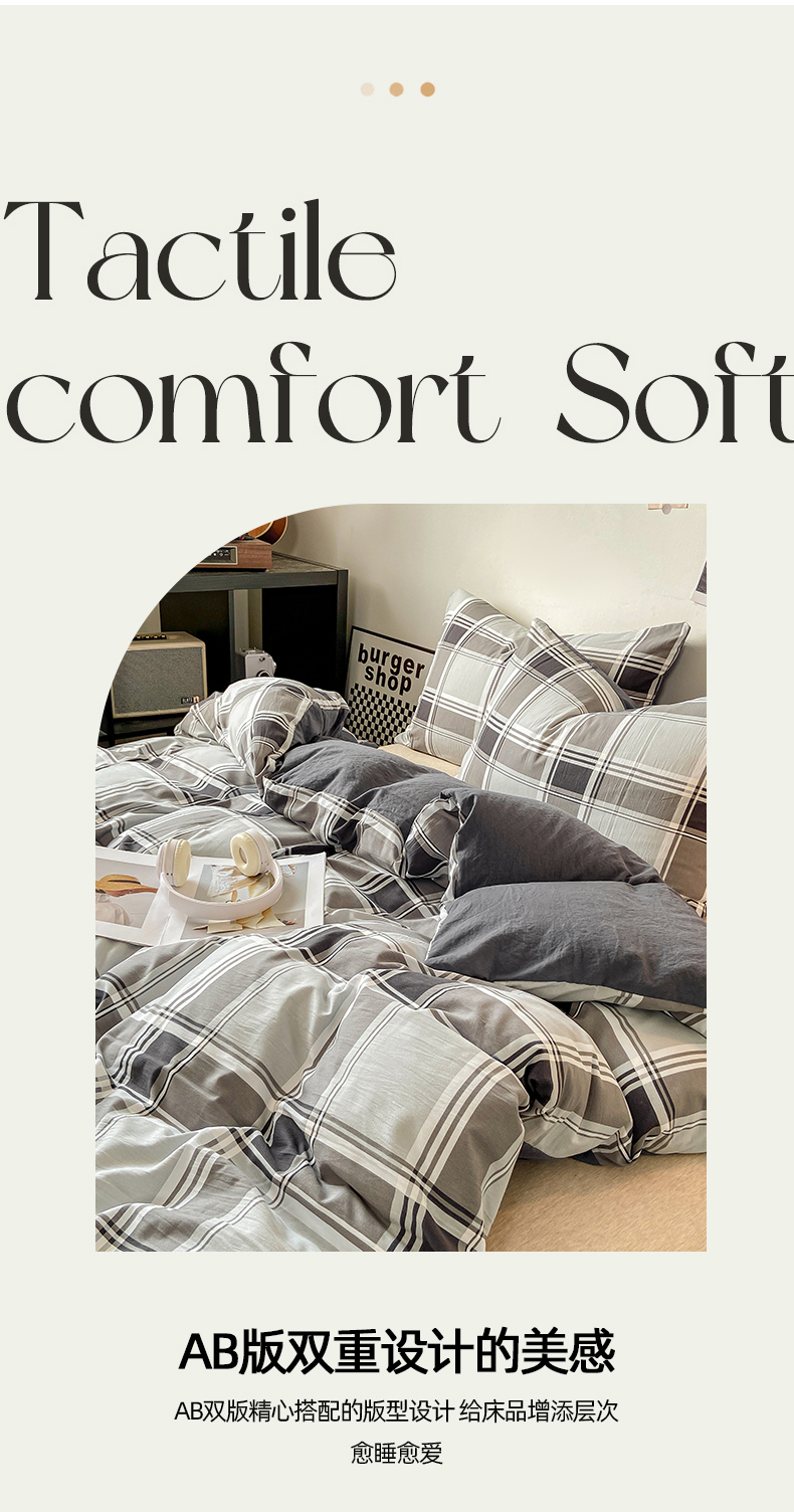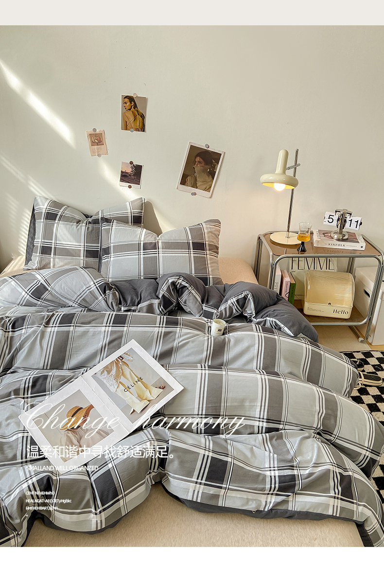悦织湾家纺 2025新款日式简约格子水洗棉单品被套系列 绅士灰