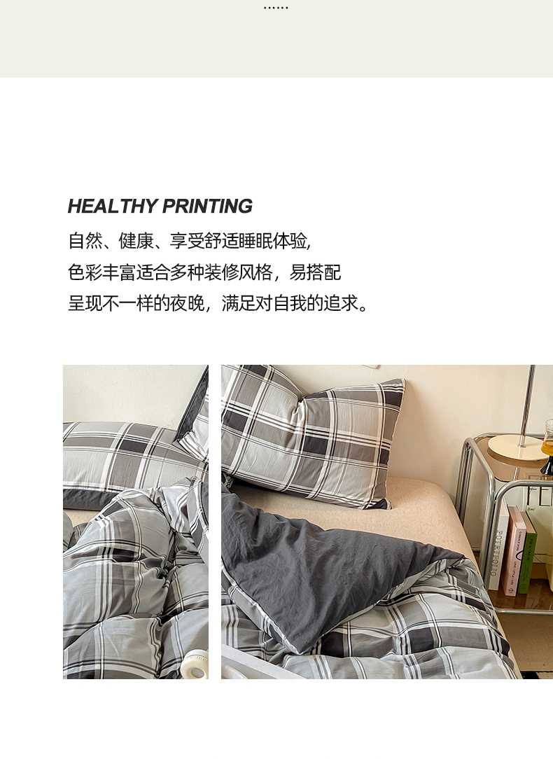 商品名称:悦织湾家纺 2025新款日式简约格子水洗棉单品被套系列 绅士灰