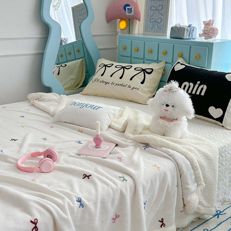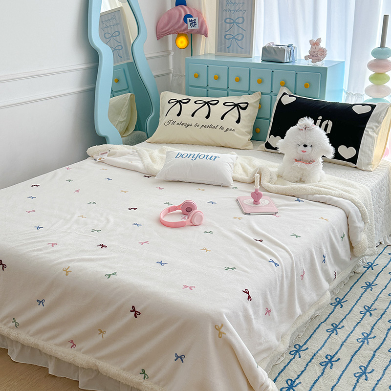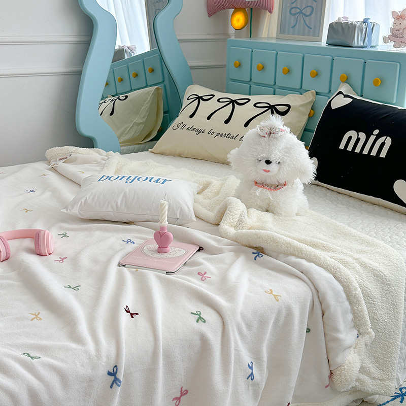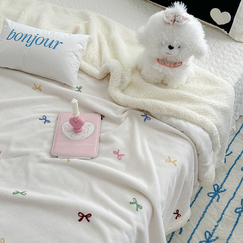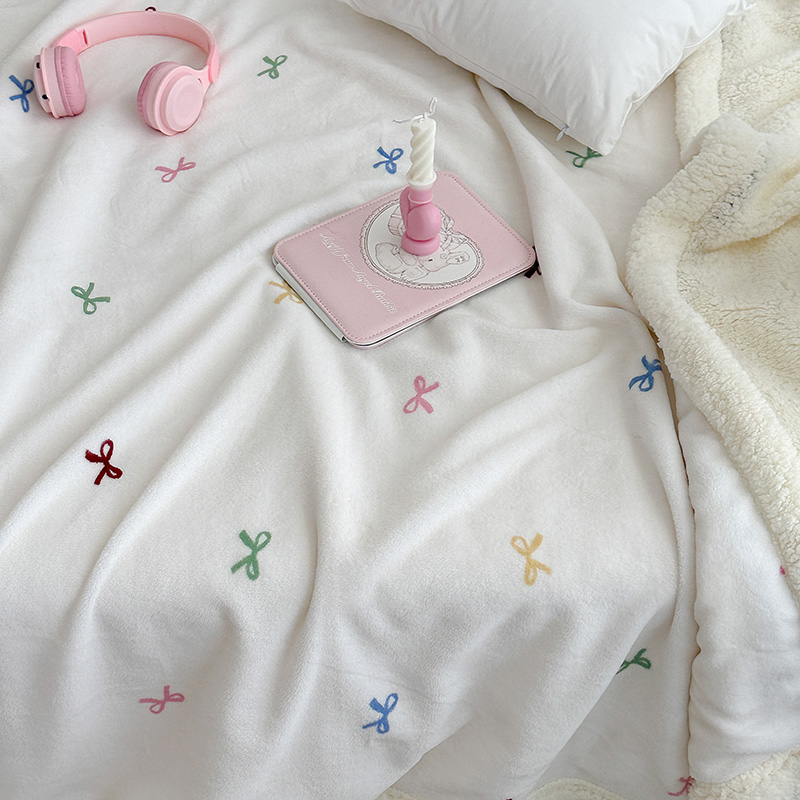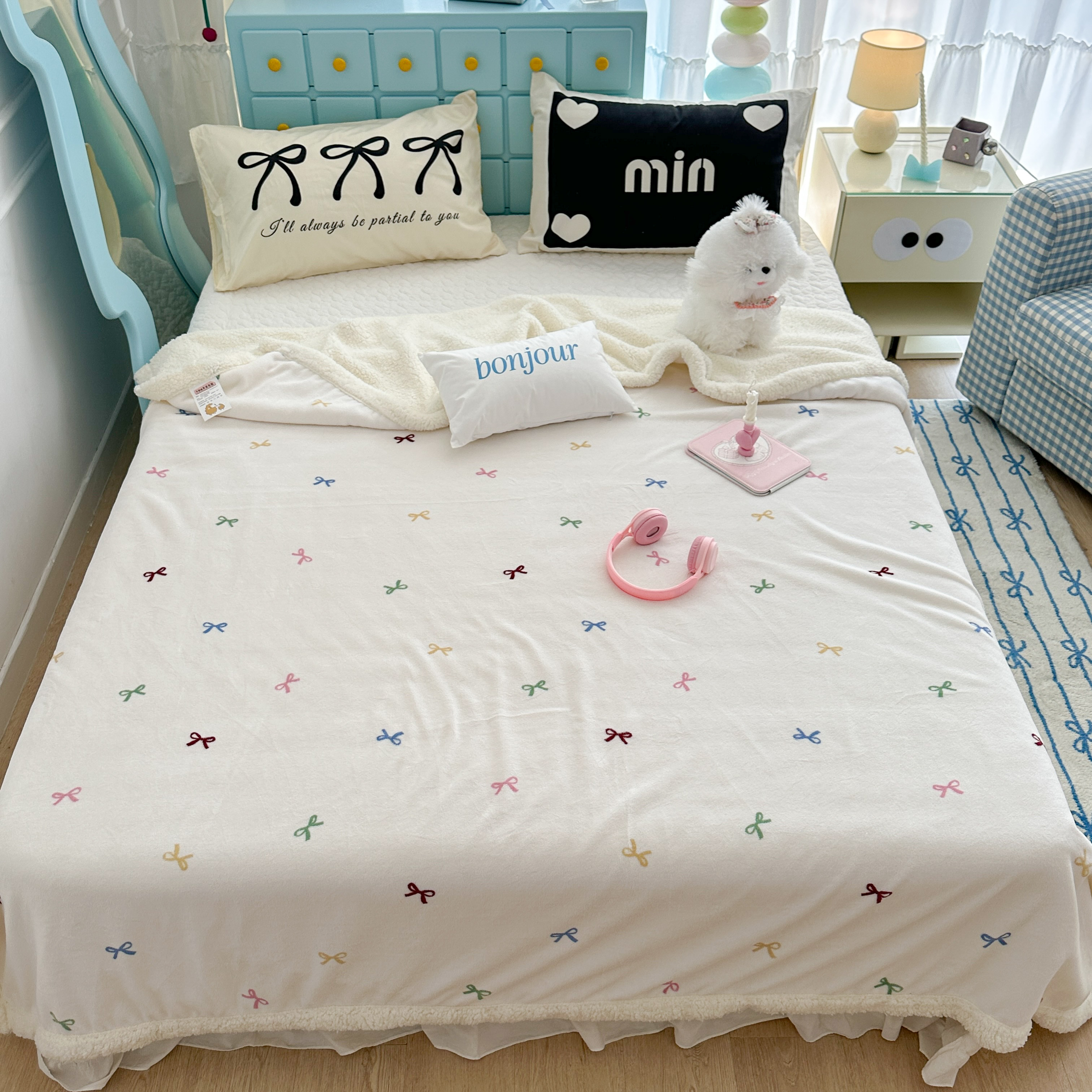 昔可家纺 2024新款羊羔绒牛奶绒毛毯系列(三)-ins小清新系列 多巴胺蝴蝶结