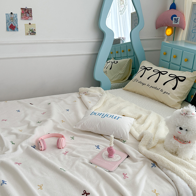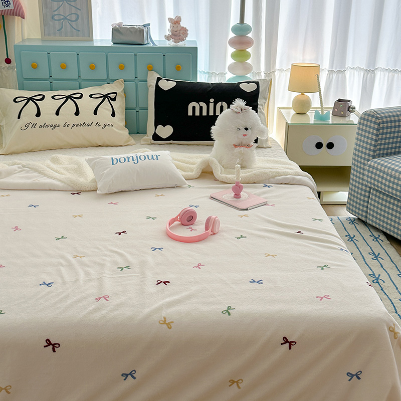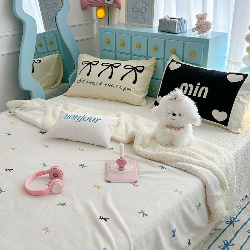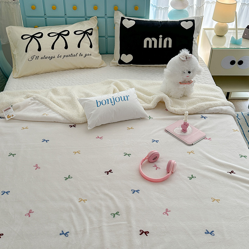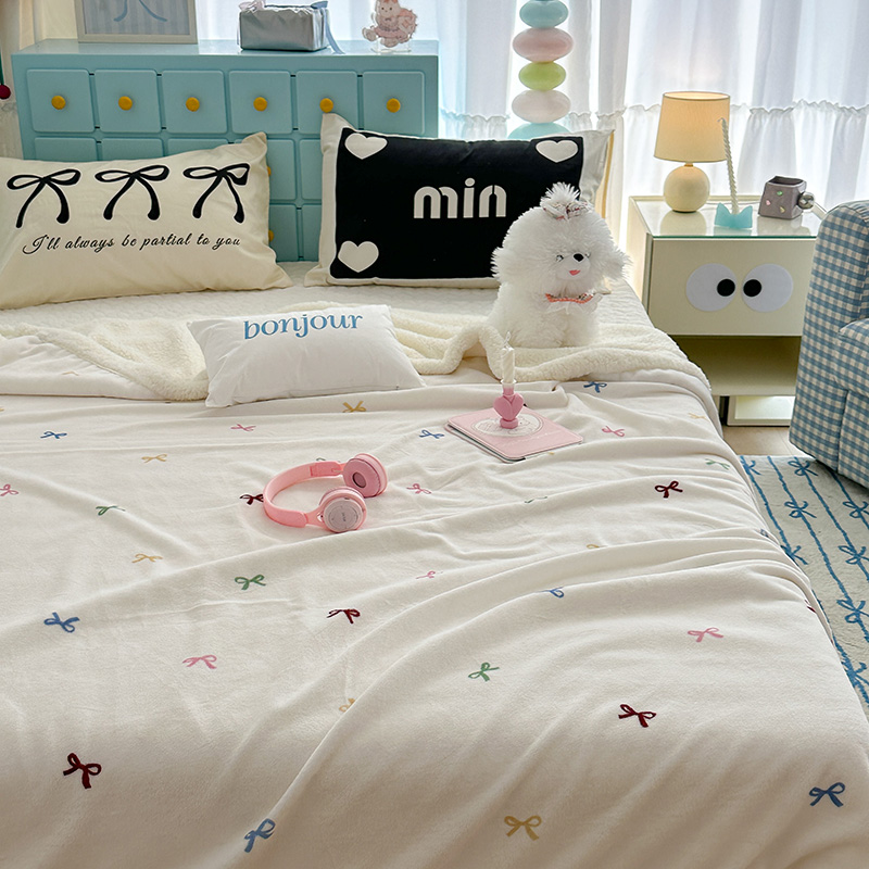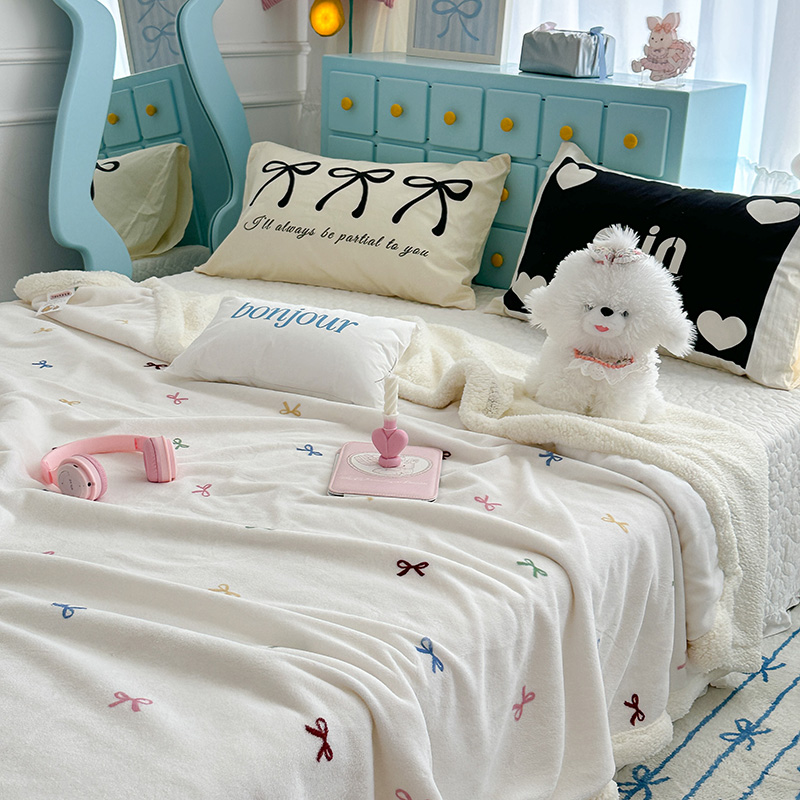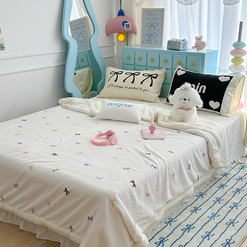 昔可家纺 2024新款羊羔绒牛奶绒毛毯系列(三)-ins小清新系列 多巴胺蝴蝶结