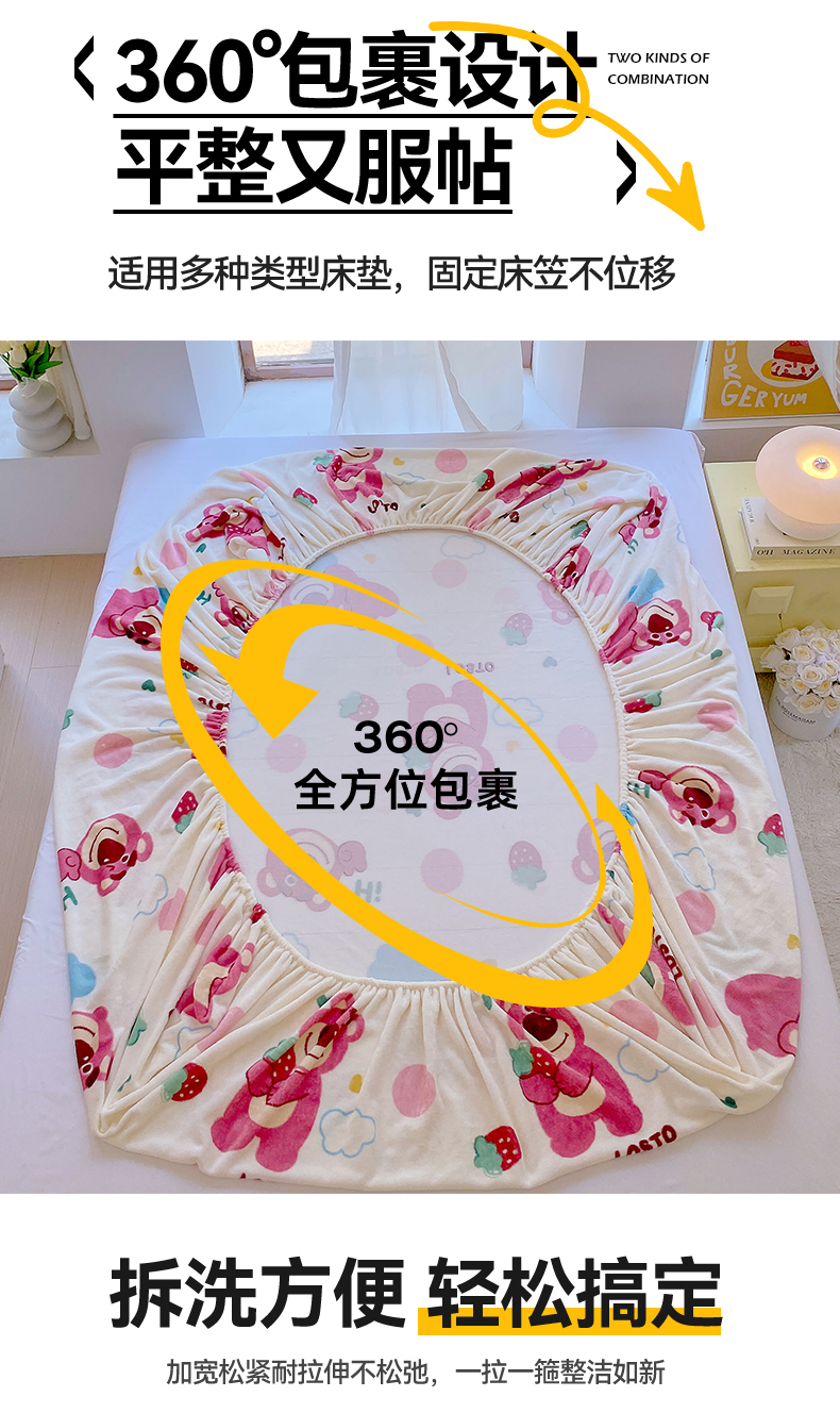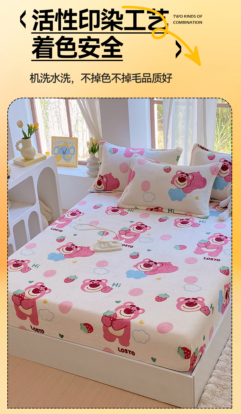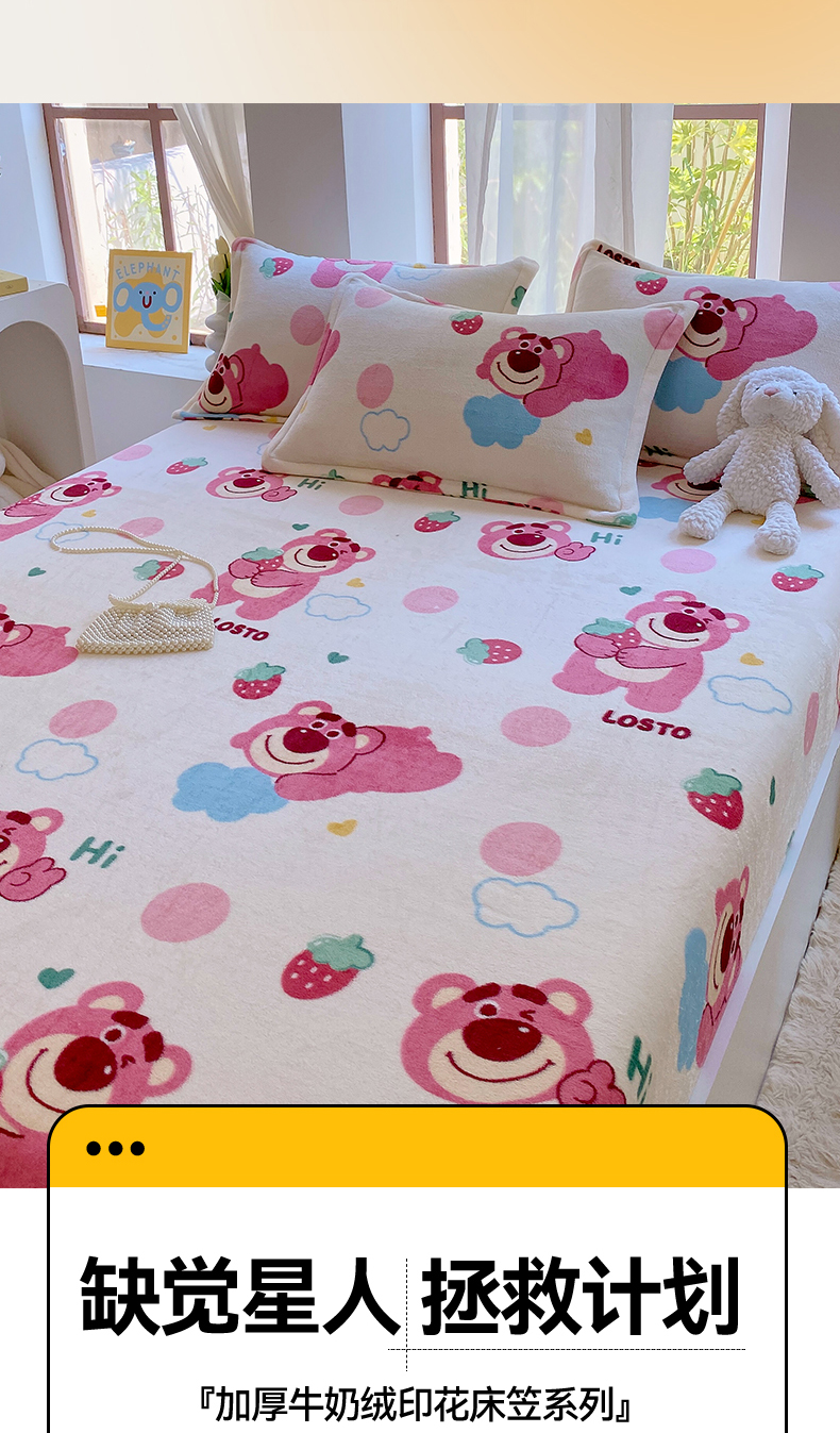 凯儿家纺 2024新款加厚高克重印花系列单床笠 萌萌熊宝
