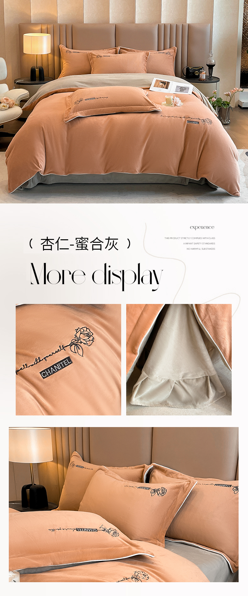 (总)嗯呢家纺 2024新款A类高克重全消光婴儿绒刺绣双拼四件套,豆沙-蜜合灰,豆沙-银灰,漫灰-蜜合灰,莫兰迪粉-漫灰,浅可可-弗肯红,杏仁-蜜合灰