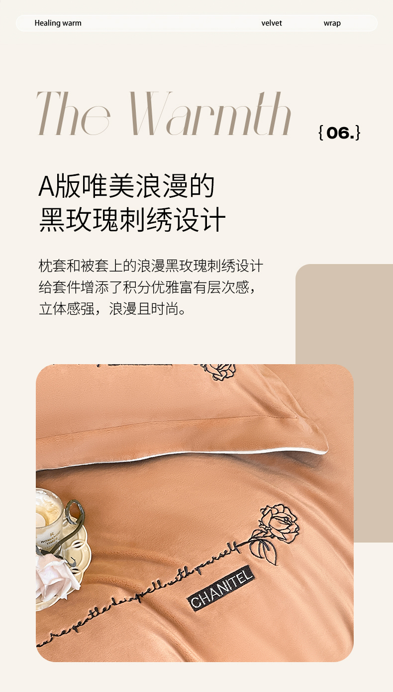 (总)嗯呢2023新款A类高克重全消光兔毛绒双拼刺绣牛奶绒四件套,玫瑰之恋-豆沙,玫瑰之恋-卡其,玫瑰之恋-嫩芽绿,玫瑰之恋-樱花粉