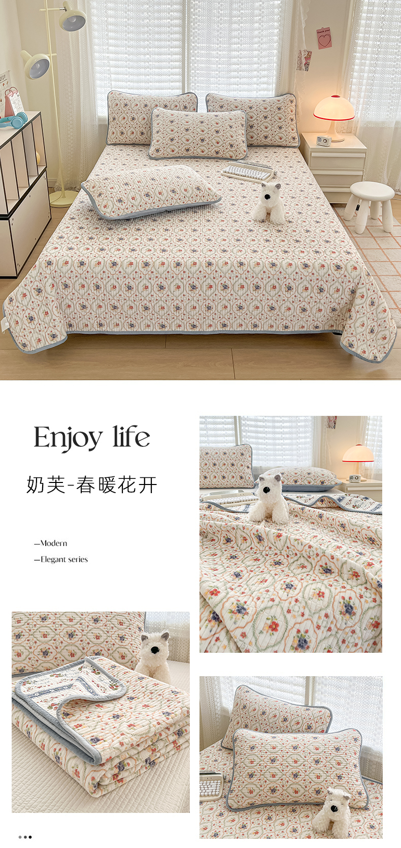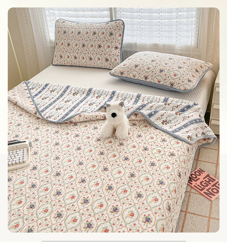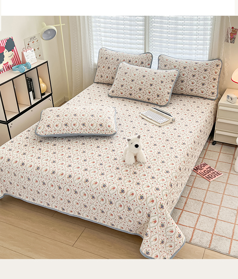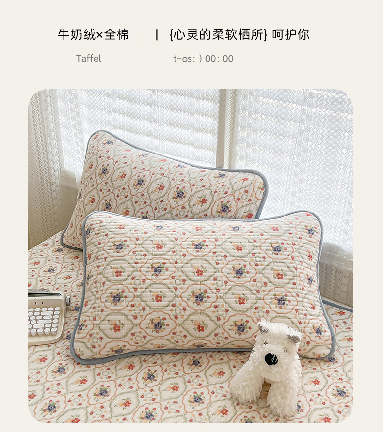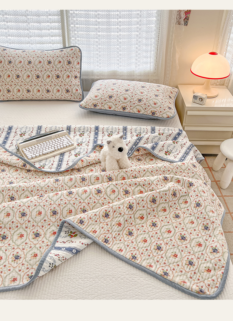 茉夕家纺 2024新款奶芙纯棉印花牛奶绒水洗床盖 奶芙-春暖花开