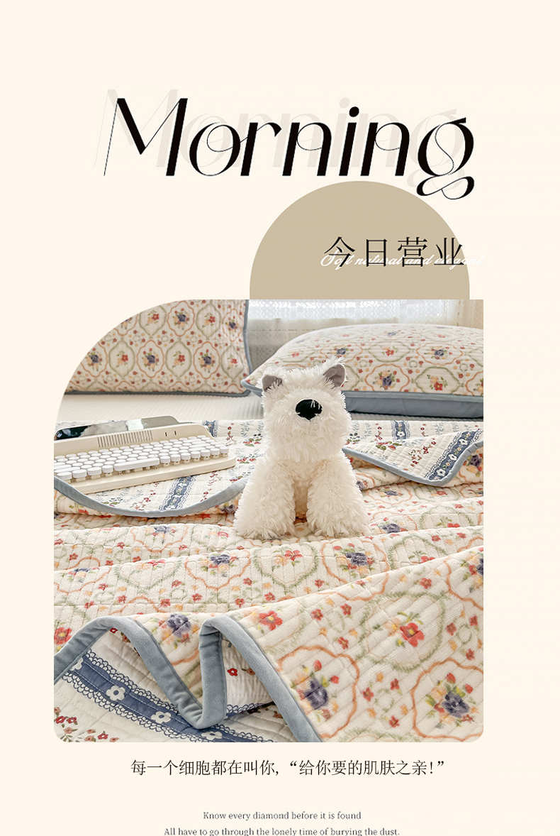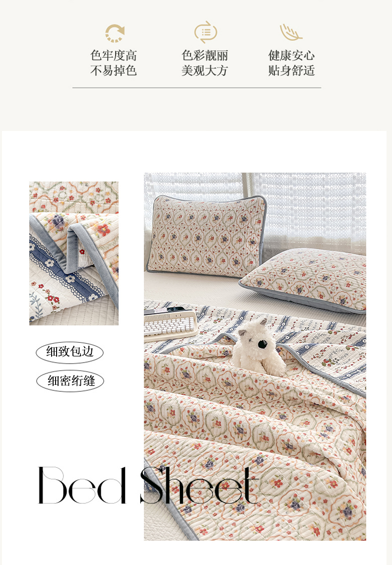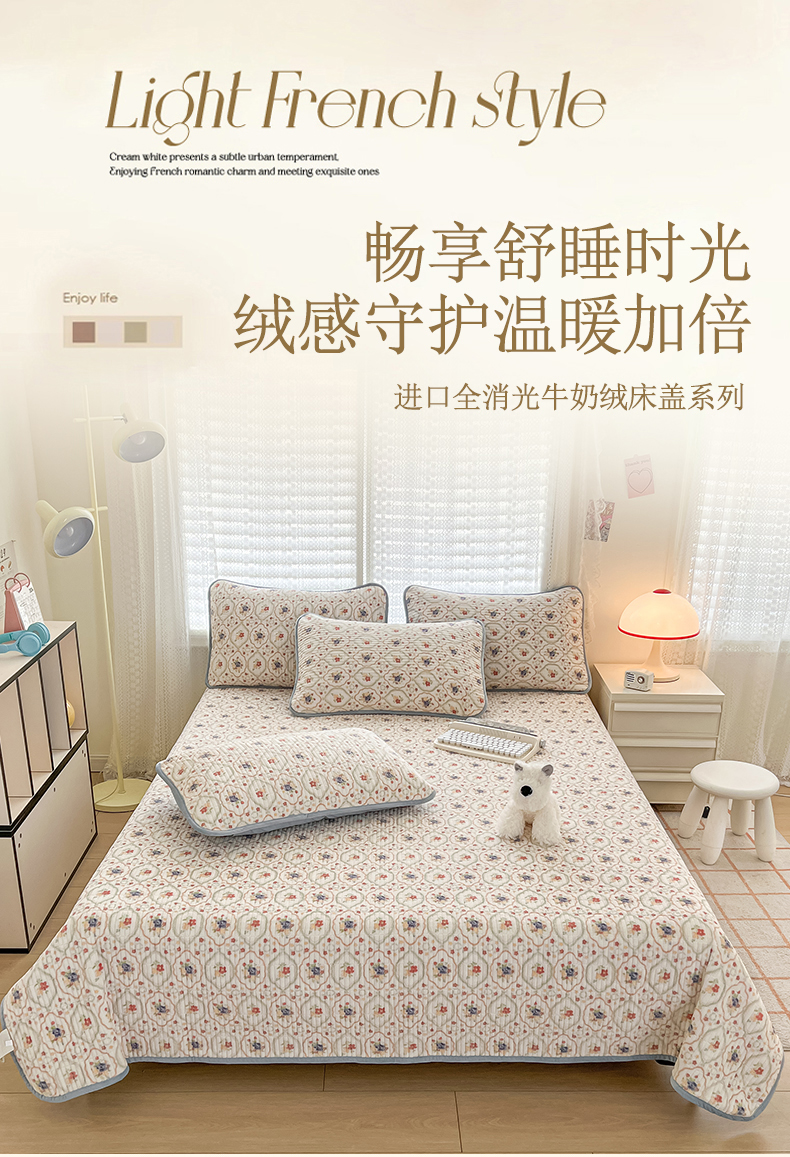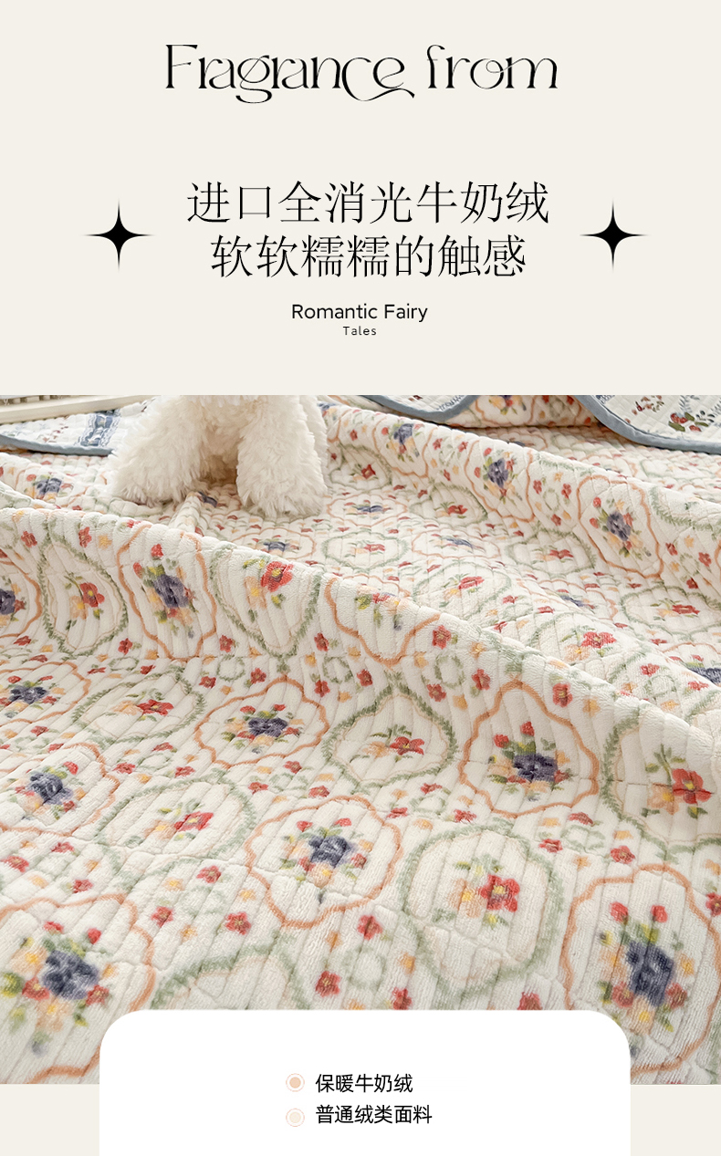 • 91家纺网 家纺一手货源 找家纺 茉夕家纺 2024新款奶芙纯棉印花牛奶绒水洗床盖 奶芙-春暖花开
