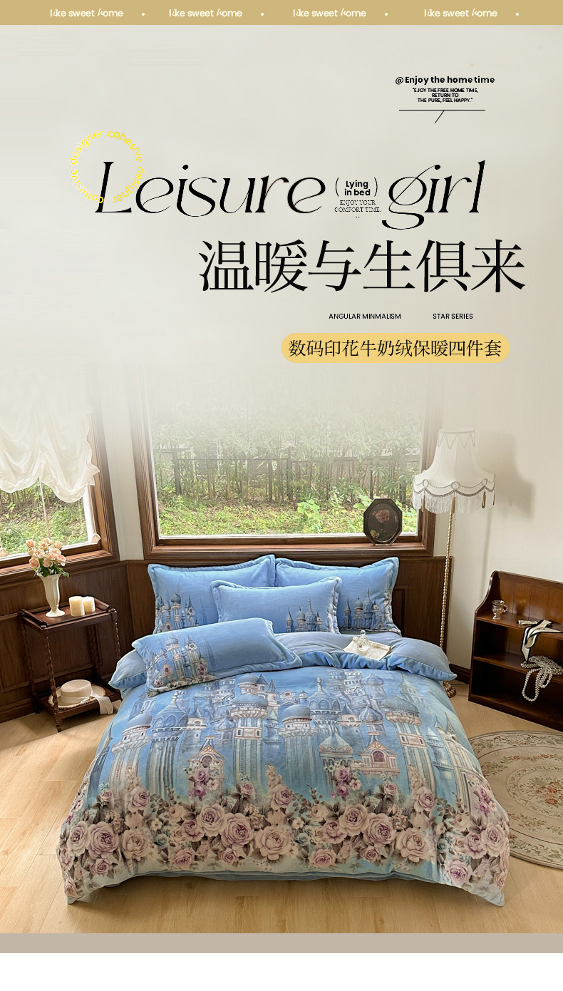 (总)麋兔 2024新款250克法式数码原创手绘牛奶绒四件套,卡蒂亚,梦幻城堡,秘境庄园,莫兰,莫奈,维密