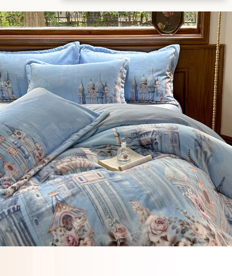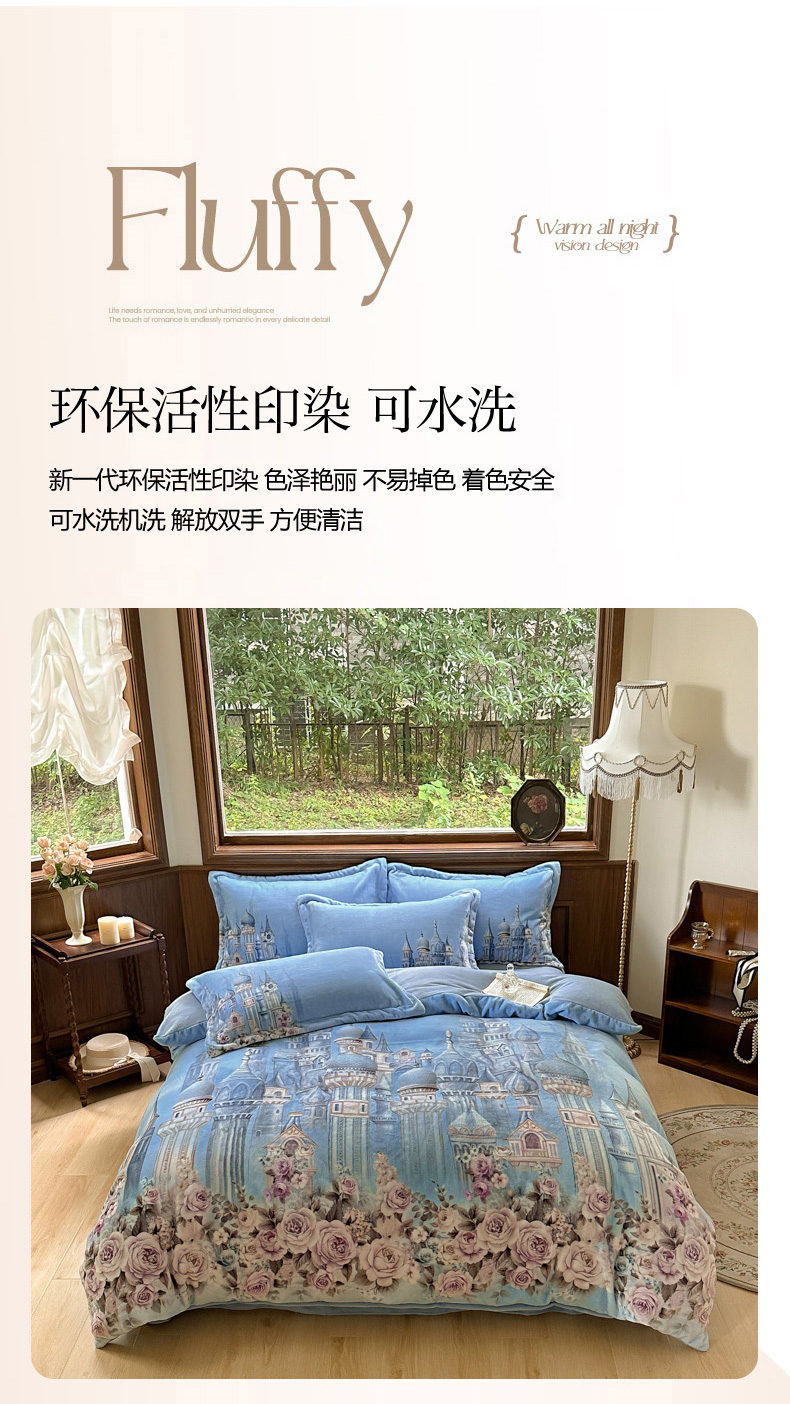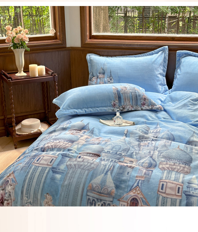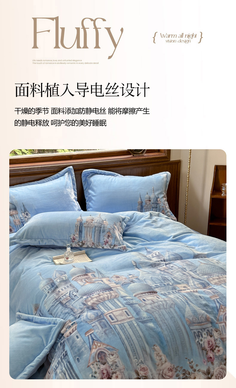 商品名称:麋兔 2024新款250克法式数码原创手绘牛奶绒四件套 梦幻城堡